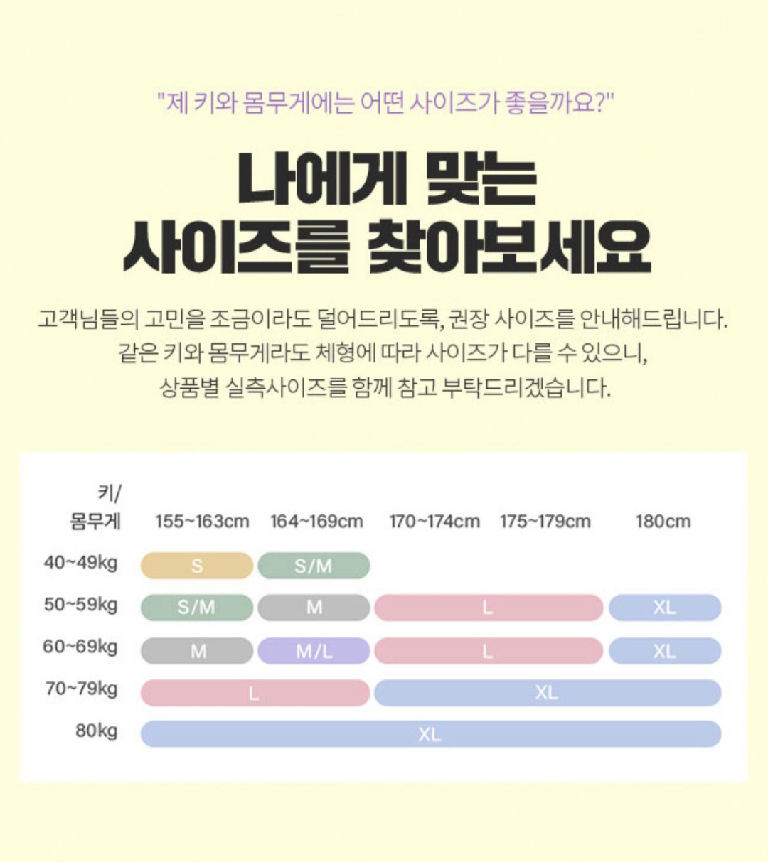 집에서 편하게 입으려고 산 옷인만큼 너무 꽉 끼어서 불편한 사이즈는 싫었다.