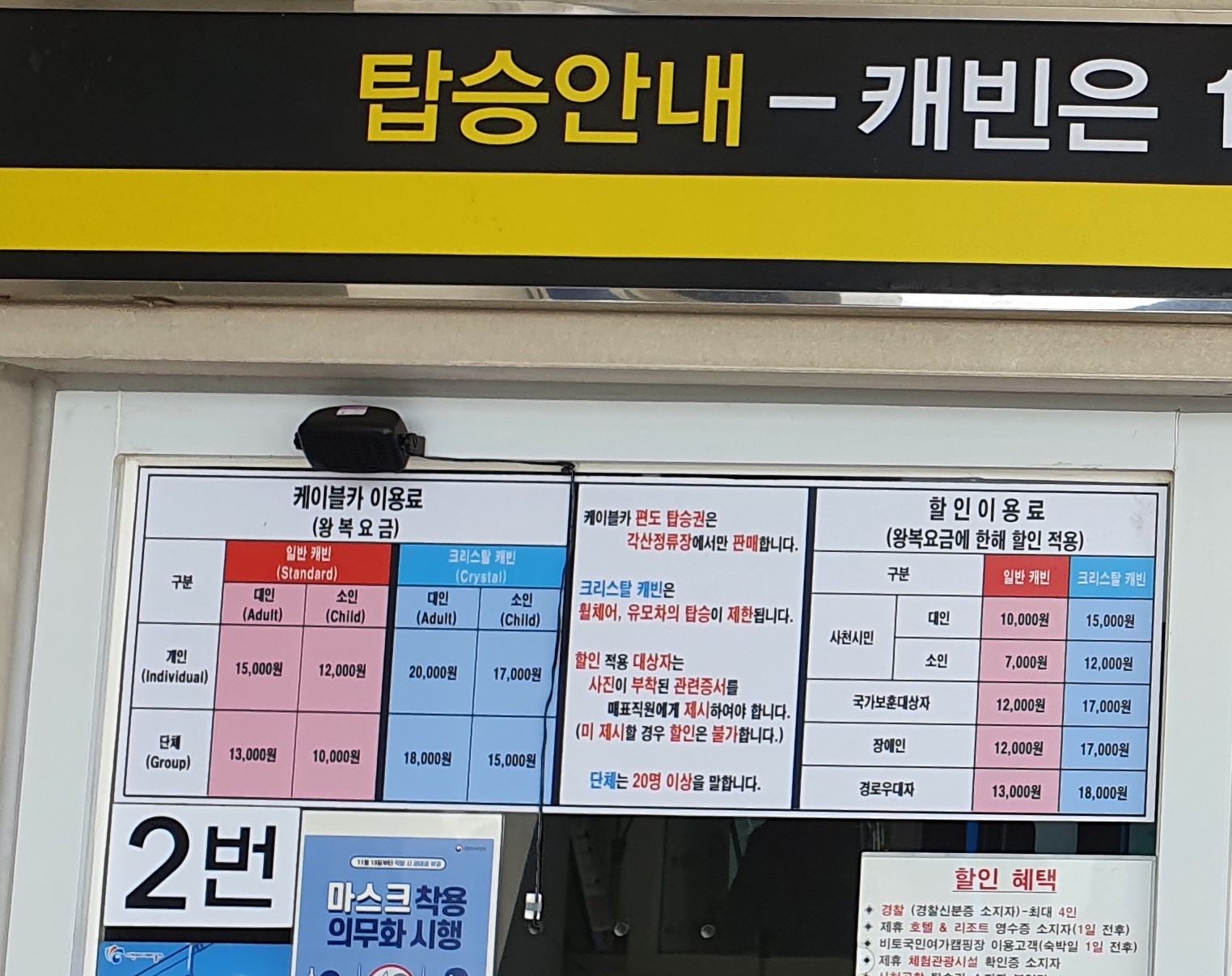 케이블카는 일반 캐빈 or 크리스탈 캐빈