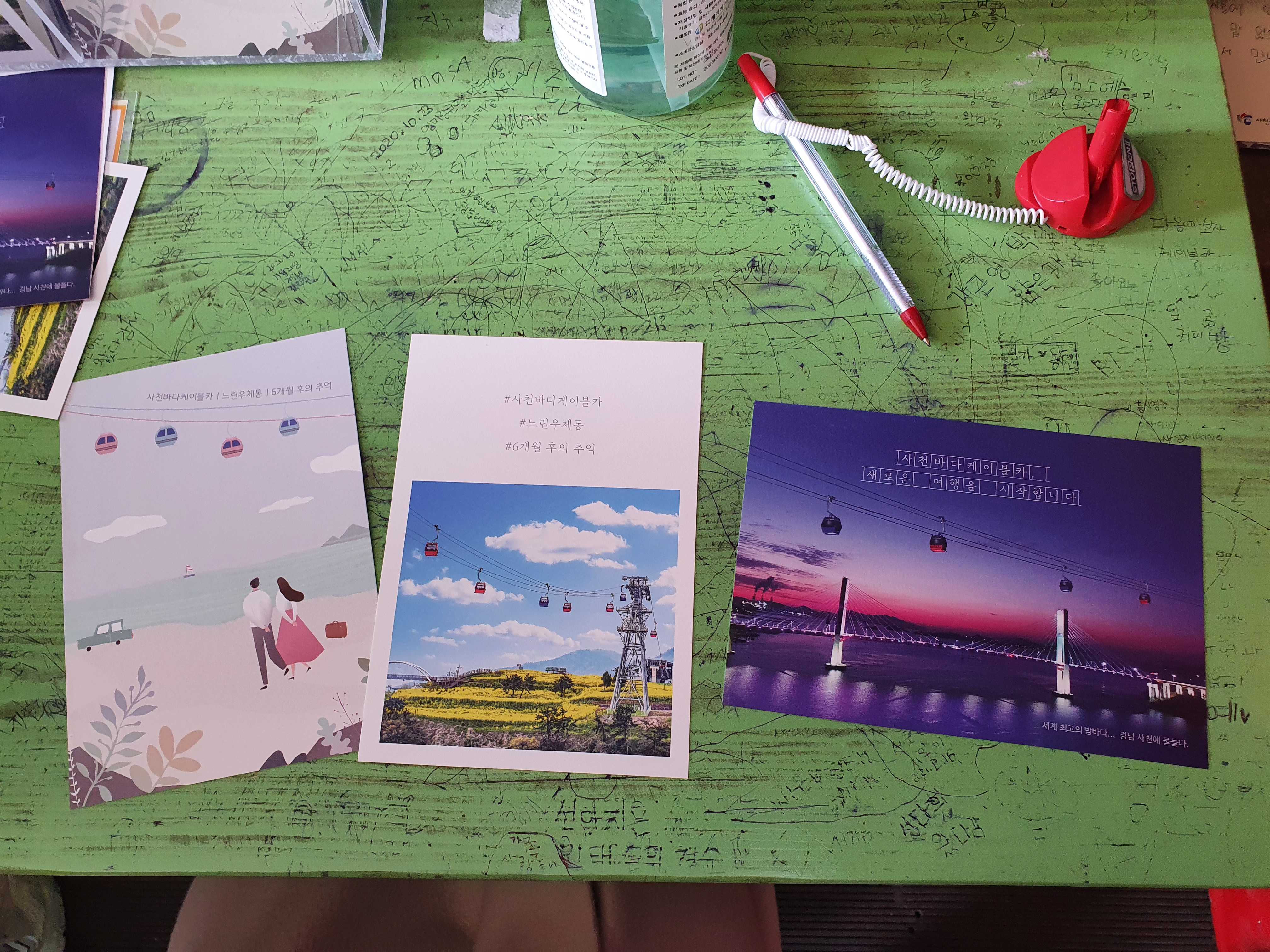 느린 우체통이 있어서 저희도 엽서 한 장 추억 삼아 보내놓고 왔습니다 ㅎㅎ
