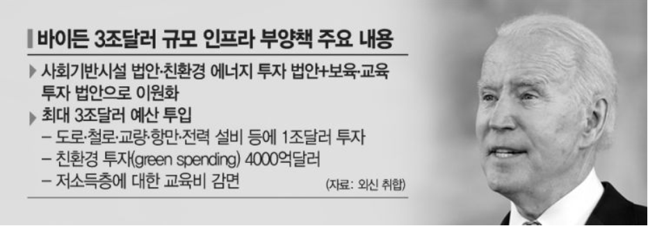 그리고 지금 바이든 행정부에서3조 달러(약 3385조 원) 규모의 인프라 부양책에 대한 이야기를 하고 있습니다.