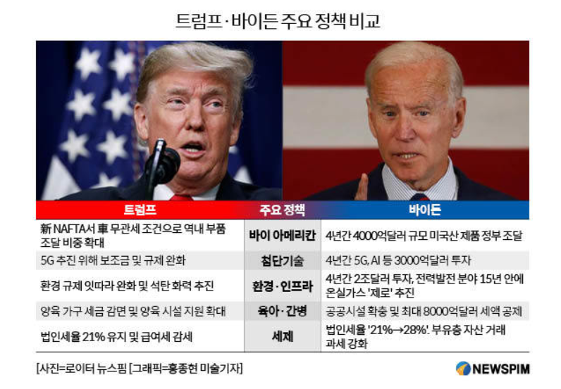 트럼프 대통령과 조 바이든 대통령 후보 간의 향후 정책의 견해 차이 때문입니다.