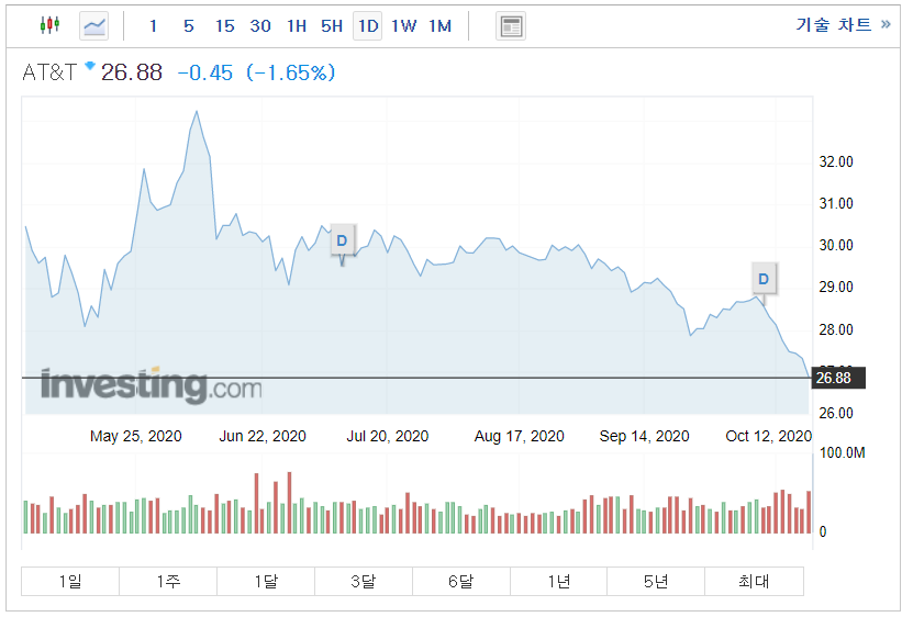 AT&T는 미국 고배당주로 배당 연금이라고 불릴 정도로 많은 분들이 투자하고