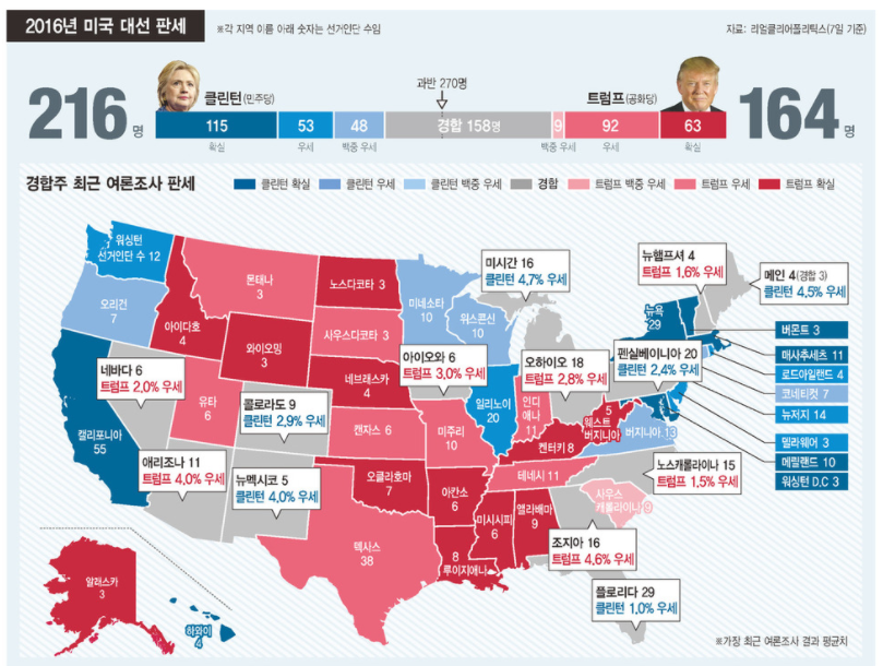 그러나 마지막까지 알 수 없는 것이 저번 대선에서도 여론조사에서는 힐러리 클린턴의 우세로