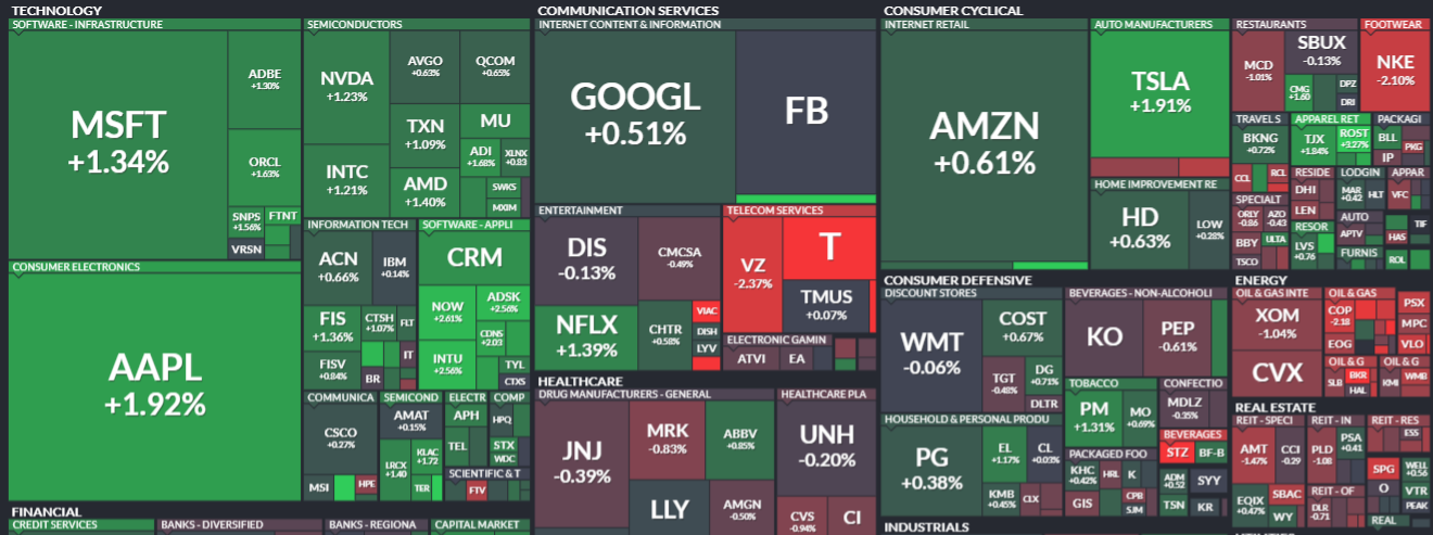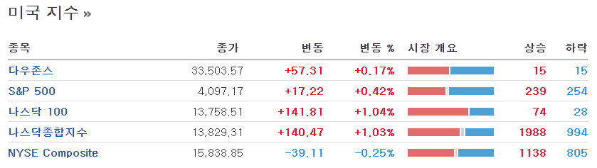 대형 기술주 위주로 상승을 하며 S&P 500과 나스닥 상승을 견인한 모습입니다.