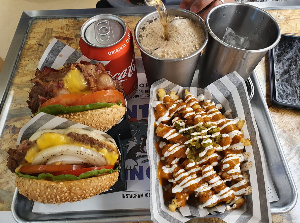 저희는 치즈버거랑 더블 베이컨 스파이시 치플레 프라이즈를 시켰습니다.