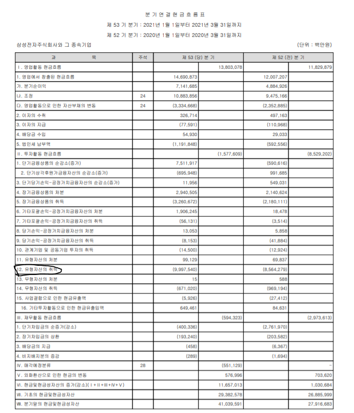 정확한 설비 투자 규모를 알려면 사업보고서 주석사항에 정확한 투자금액이 나옵니다.