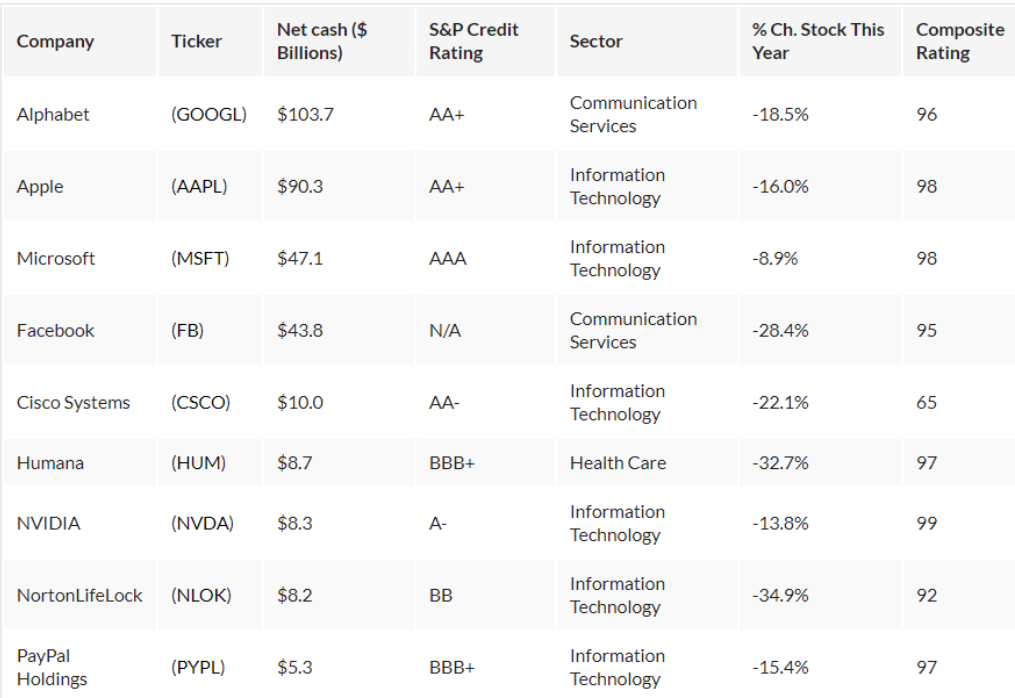 위의 사진은 Investor's business daily(IBD)라는 웹사이트에 나온 현금 보유량이 가장 많은 기업 순위입니다.
