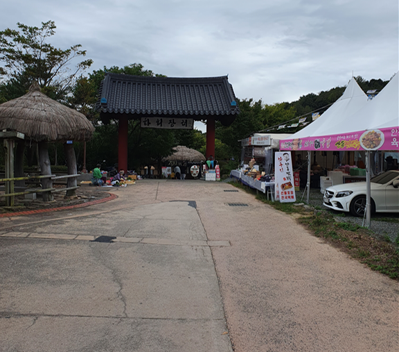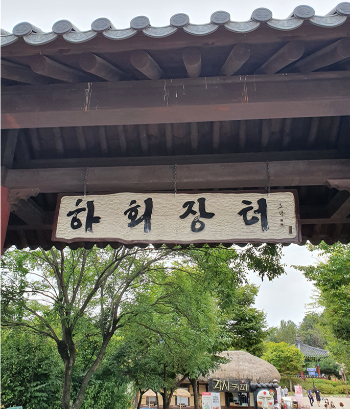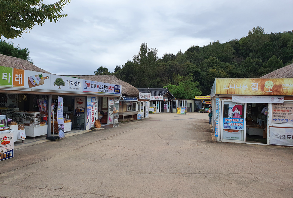 멀리서 보이는 하회장터 간판들과 운영 중인 식당들 사람들도 제법 많이 보였습니다.