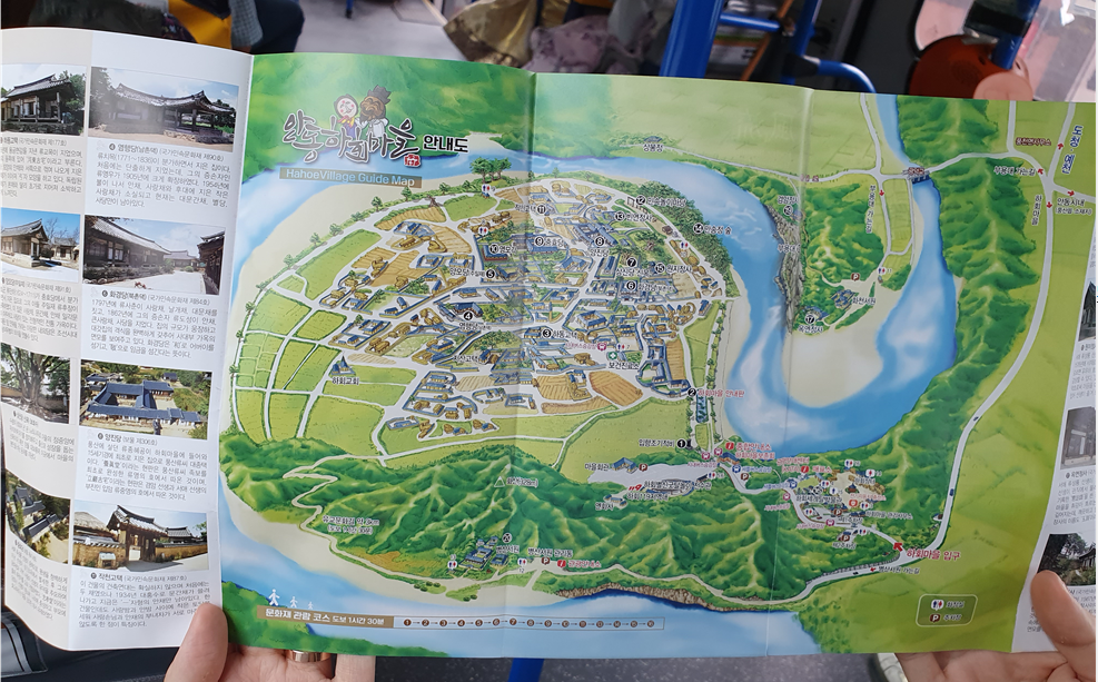 버스에서 기다리며 하회마을 안내도를 보는데 엄청 크다고 느껴졌습니다.