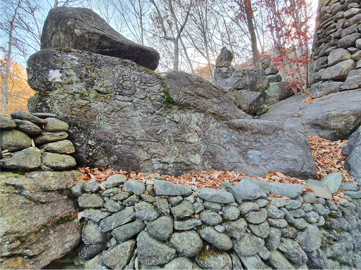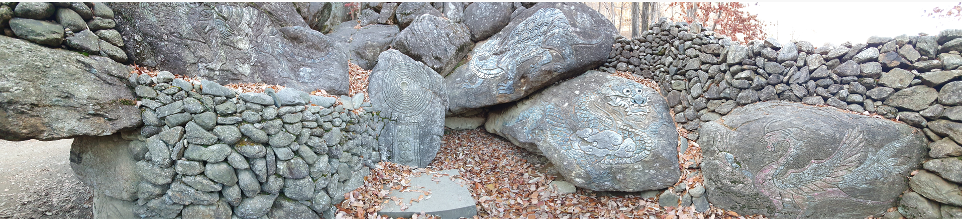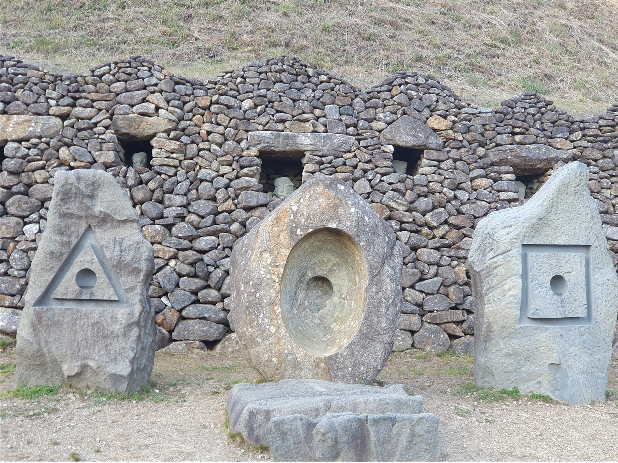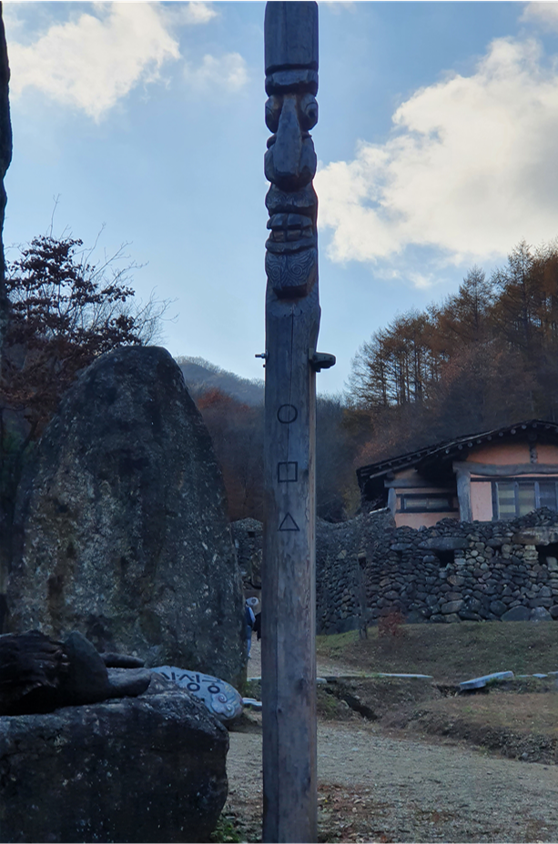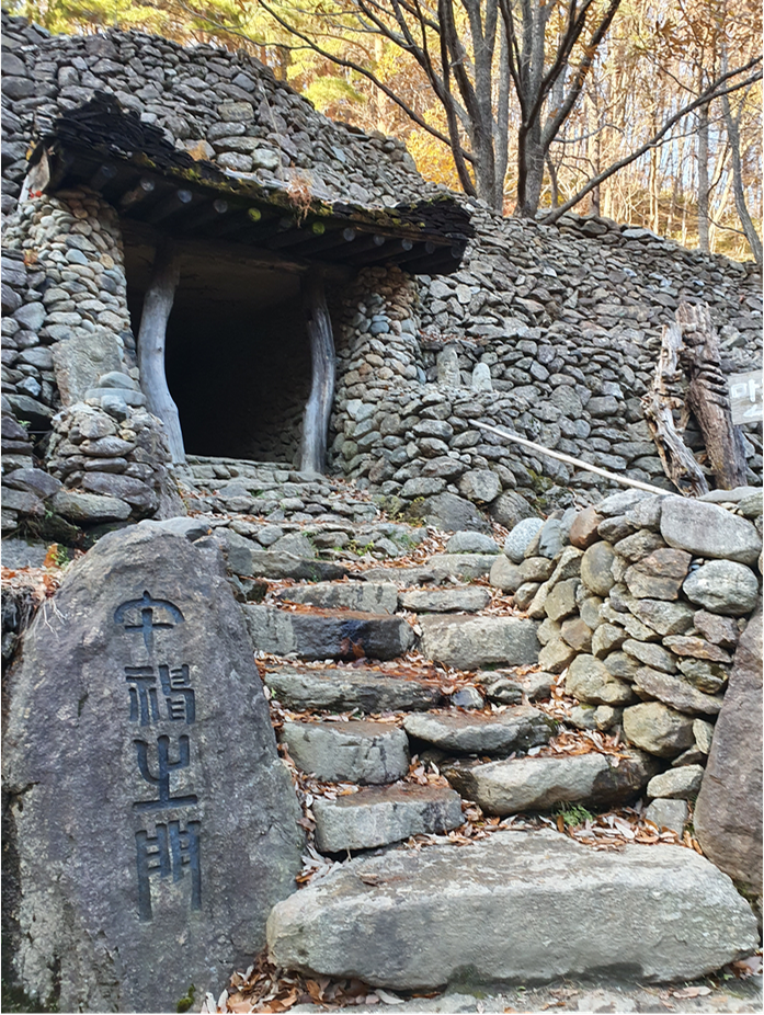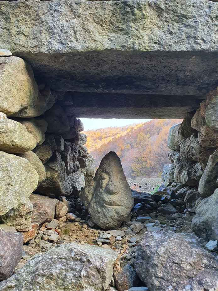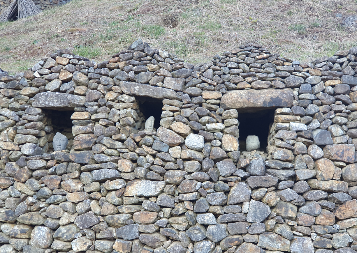 그리고 돌담에 작은 집으로 보이는곳에 사람 얼굴모양으로 보이는 돌들이 하나씩 들어가있는데 산의 정령(?) 같은 것의 집이 아닐까?? 라는 생각이 들었습니다.