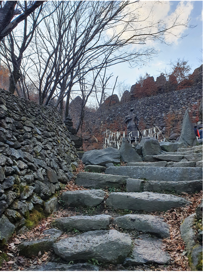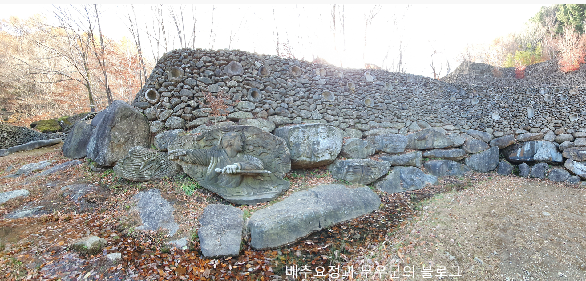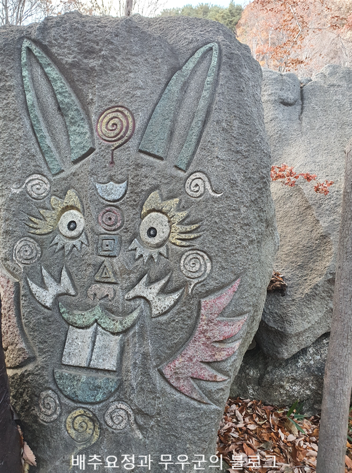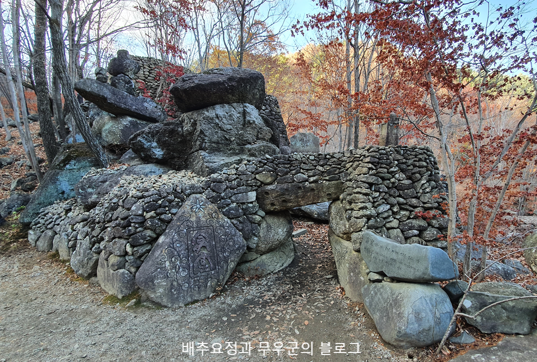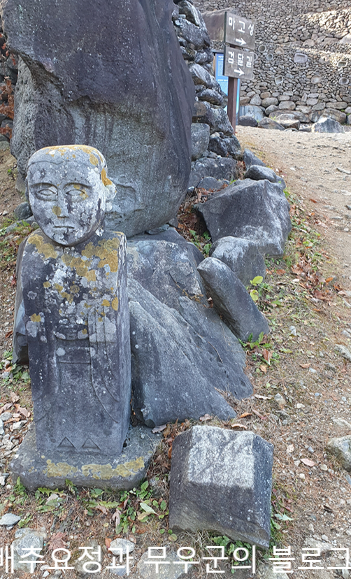 천천히 올라가는데 중간중간 삼성궁에 대한 설명이 적혀있는 표지판과 여러 조각상들이 보였습니다.