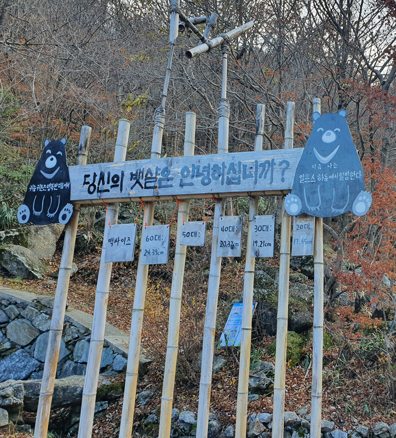 뱃살을 체크하는 최첨단(?) 대나무 시스템과 하동 여행지를 설명해주는 표지판이 있네요.