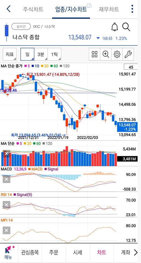나스닥 6% 하락 때부터 천천히 분할 매수를 시작하였는데 현재 약 15%나 떨어져 있어 수익률은 그다지 좋지 못하네요.