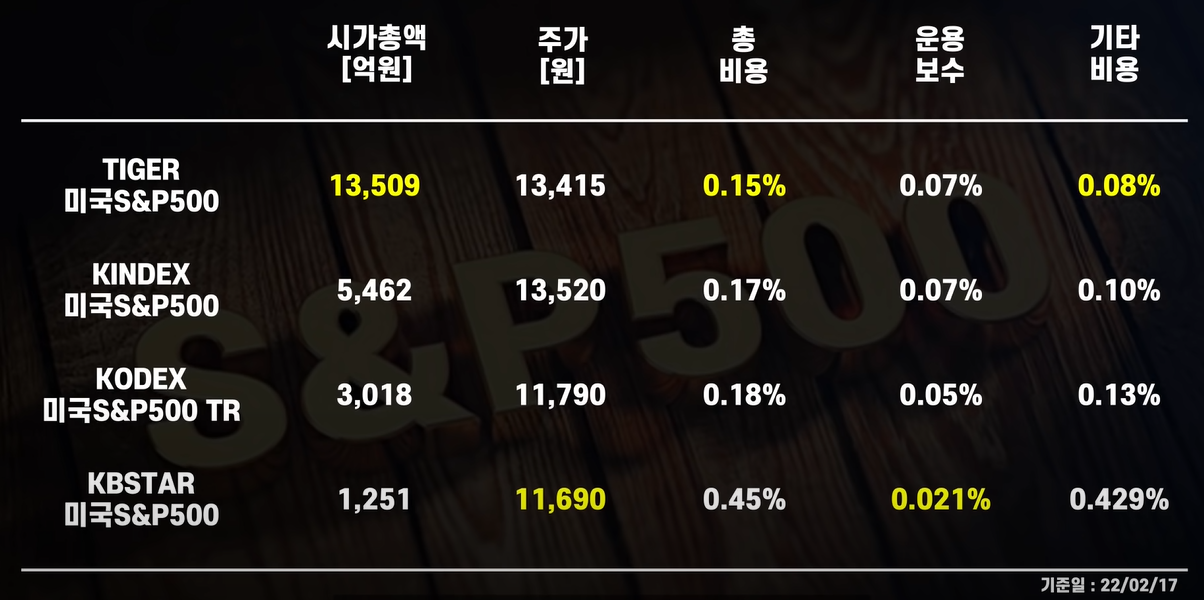 그리고 TIGER 미국 S&P 500이 가장 운용보수 및 수수료가 싸기 때문에 매수하였습니다.