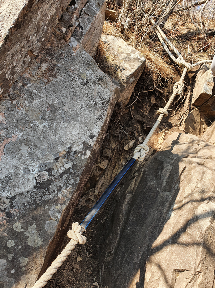 다시 돌길이 나오고 올라가기 위한 로프도 보이고...