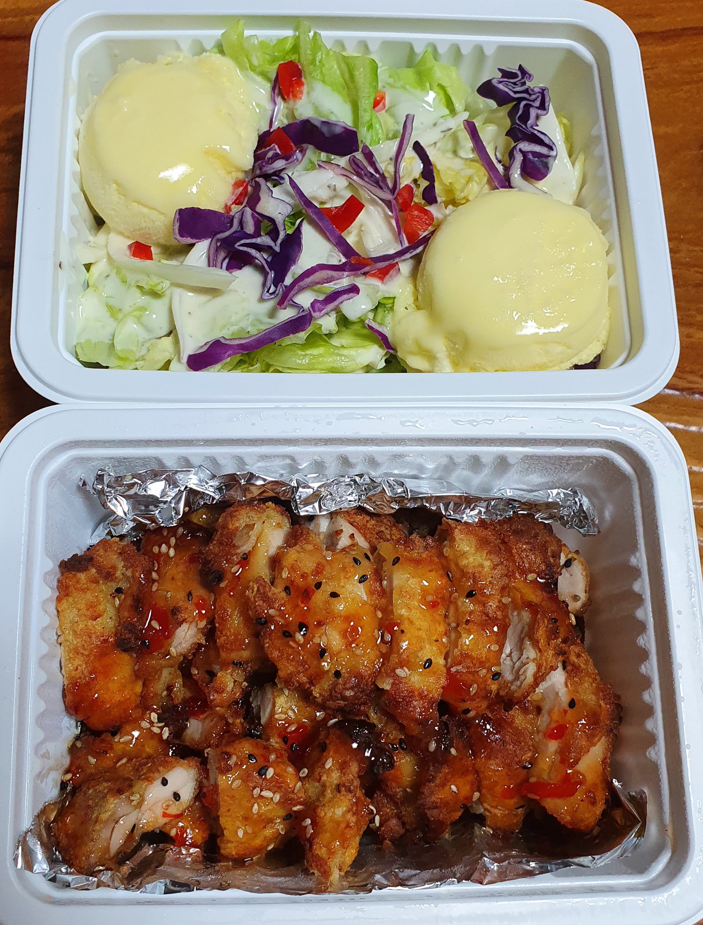 치킨과 샐러드를 함께 먹어봅니다 🐷