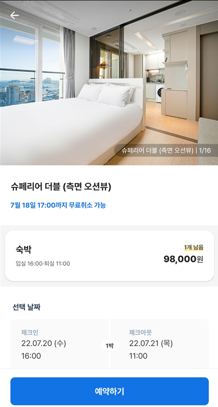 저희는 슈페리어 더블(측면 오션뷰)로 예약했고