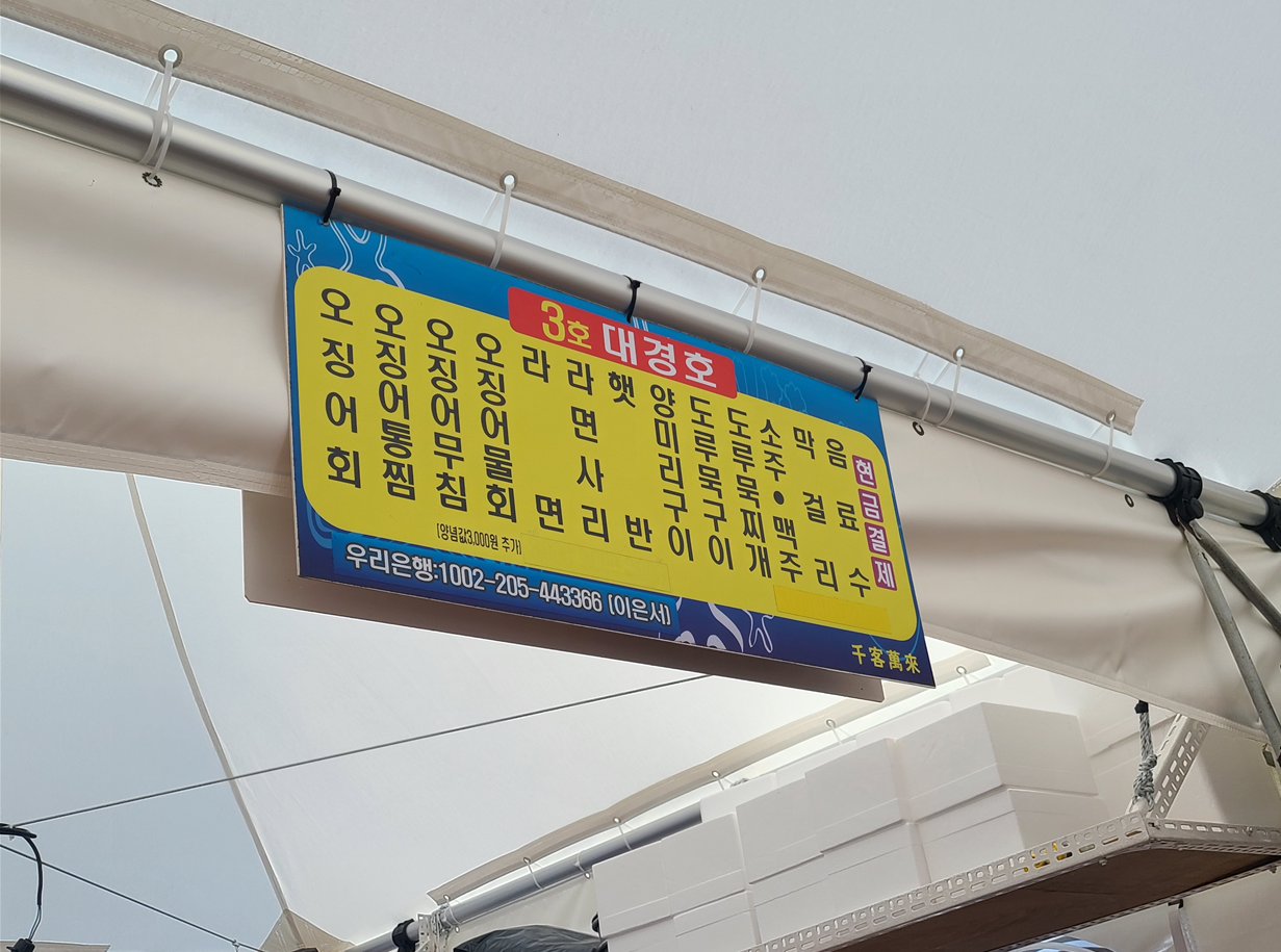 부랴부랴 배추요정과 함께 저녁을 먹으러 동명항에 오징어 통찜과 라면을 먹으러 갔습니다.