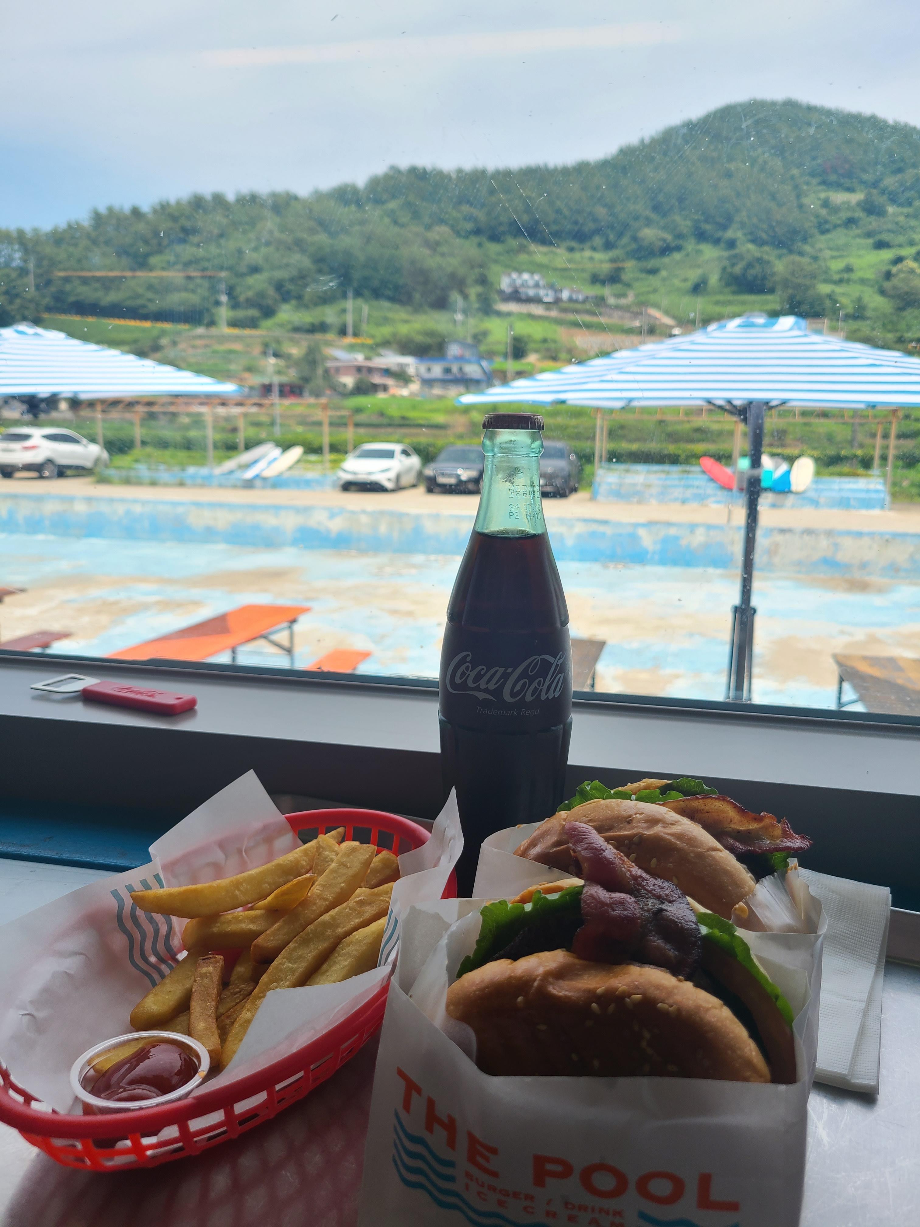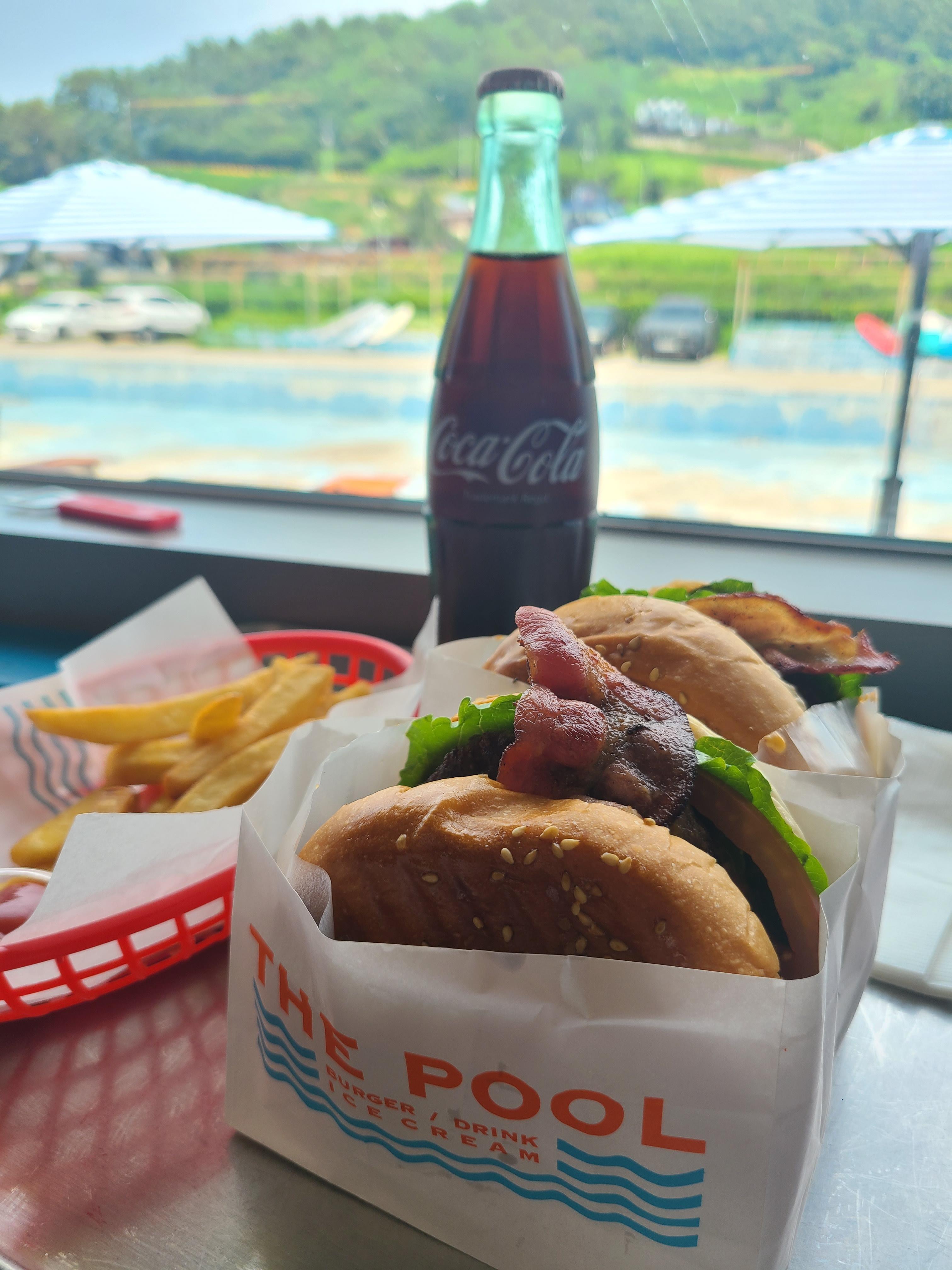 남해 '더 풀'에 가서 수제버거 1인분을 시키고