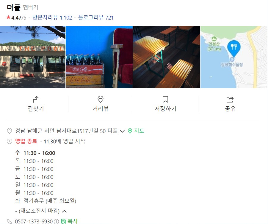 남해 더 풀(The pool) 의 정기 휴일은 화요일!!