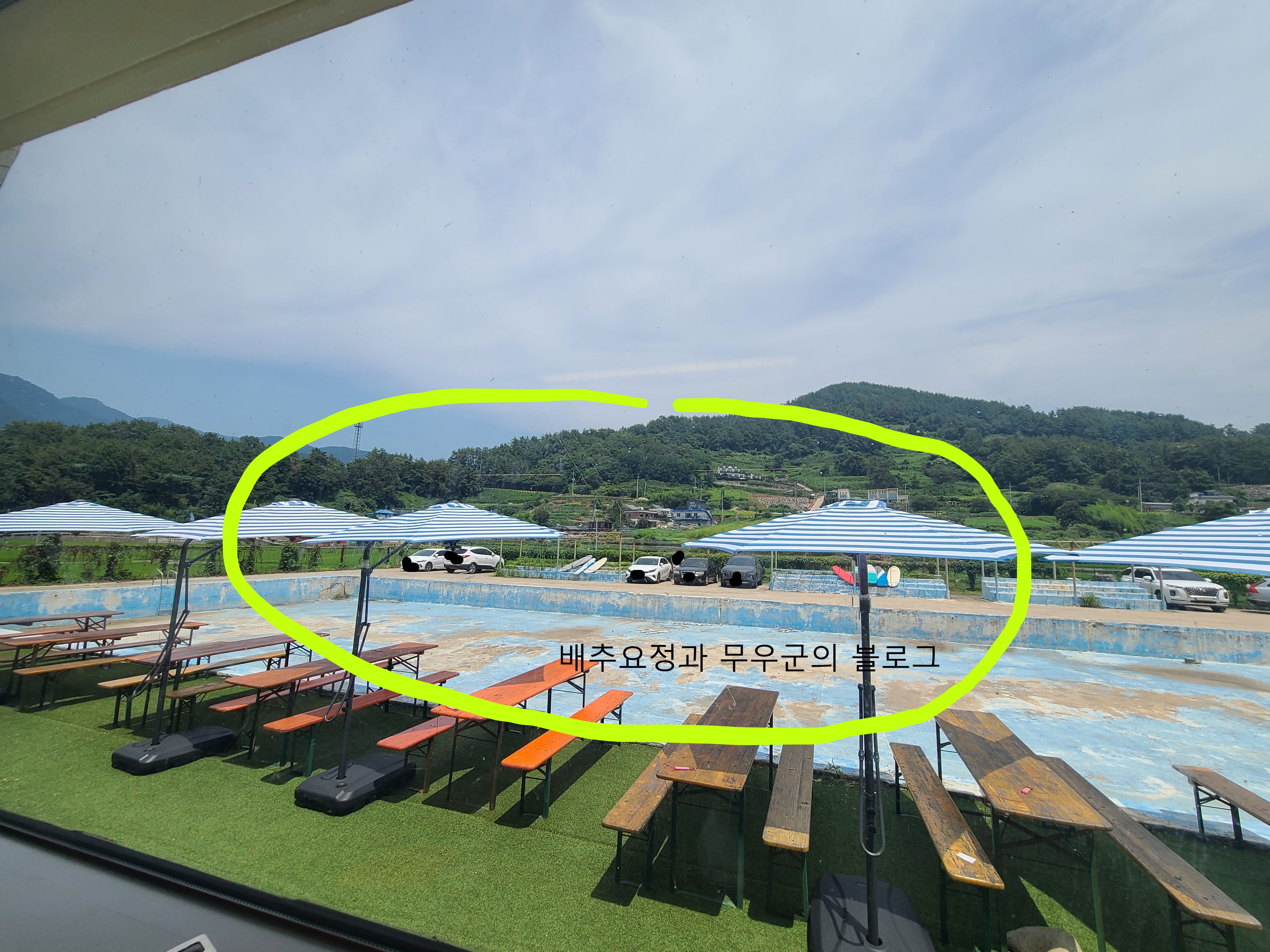 가게 좌측에 사설 주차장(?)을 지나서 더 들어가면 가게 뒷편에 있는 넓은 수영장이 나옵니다.