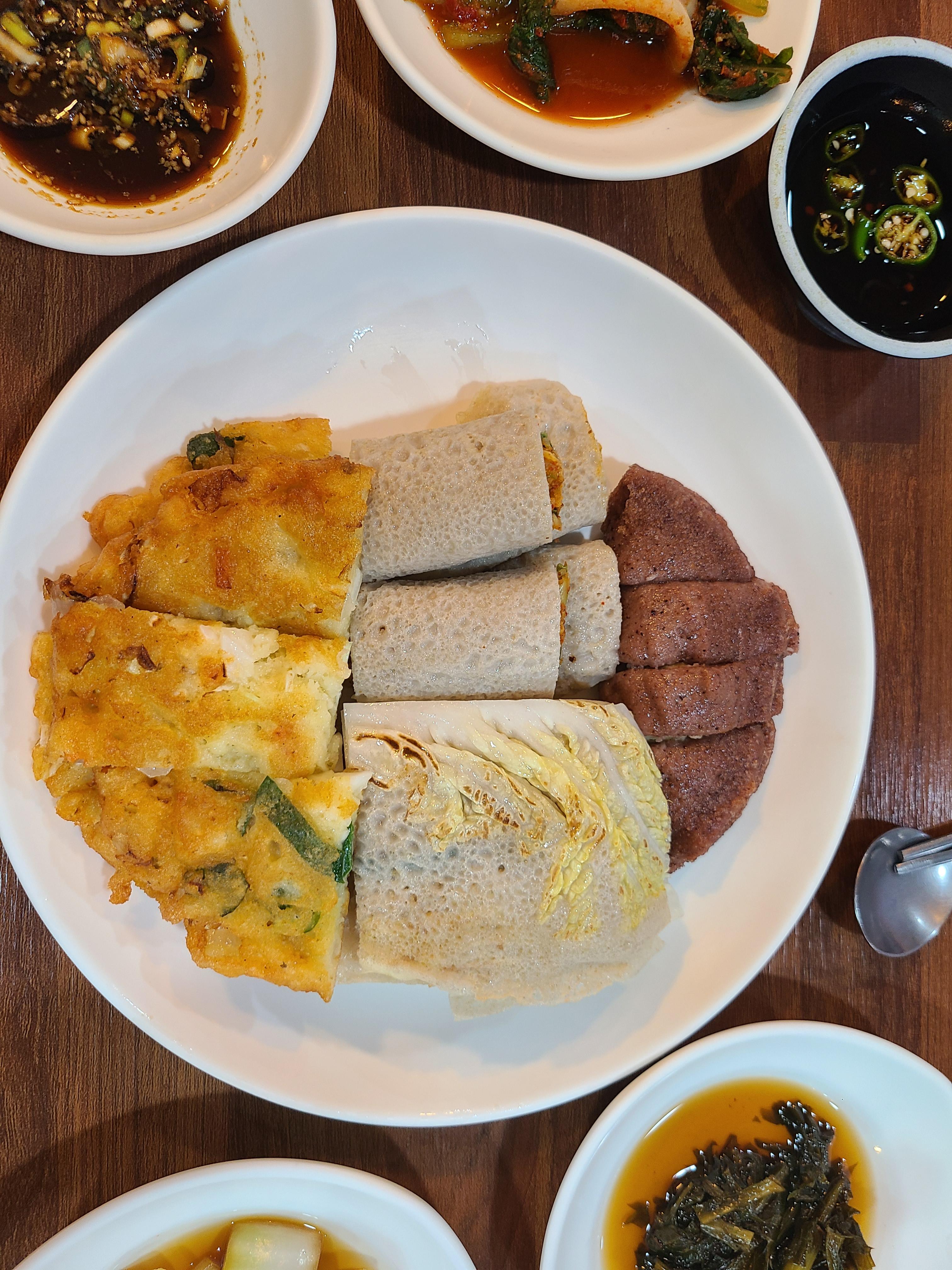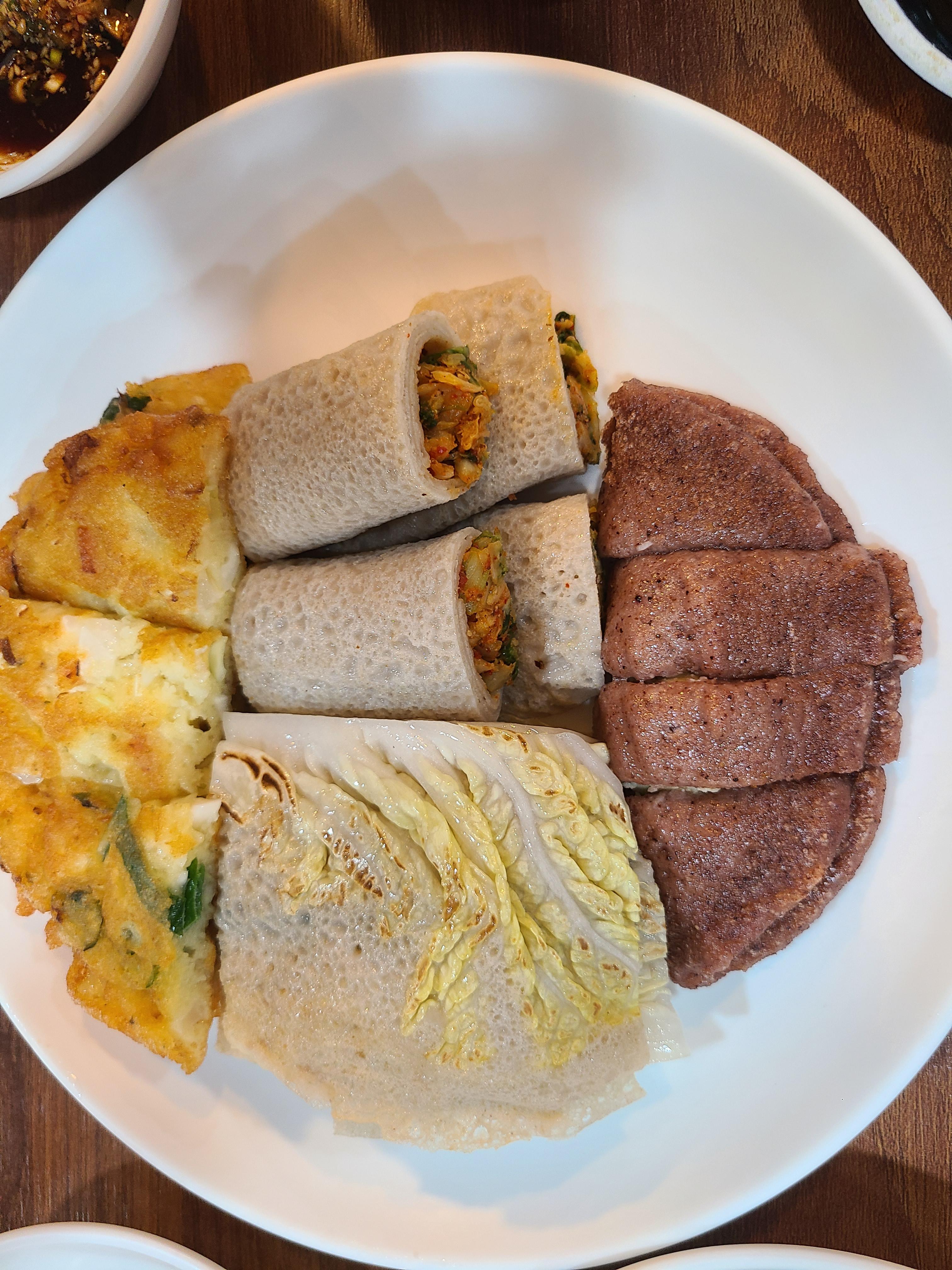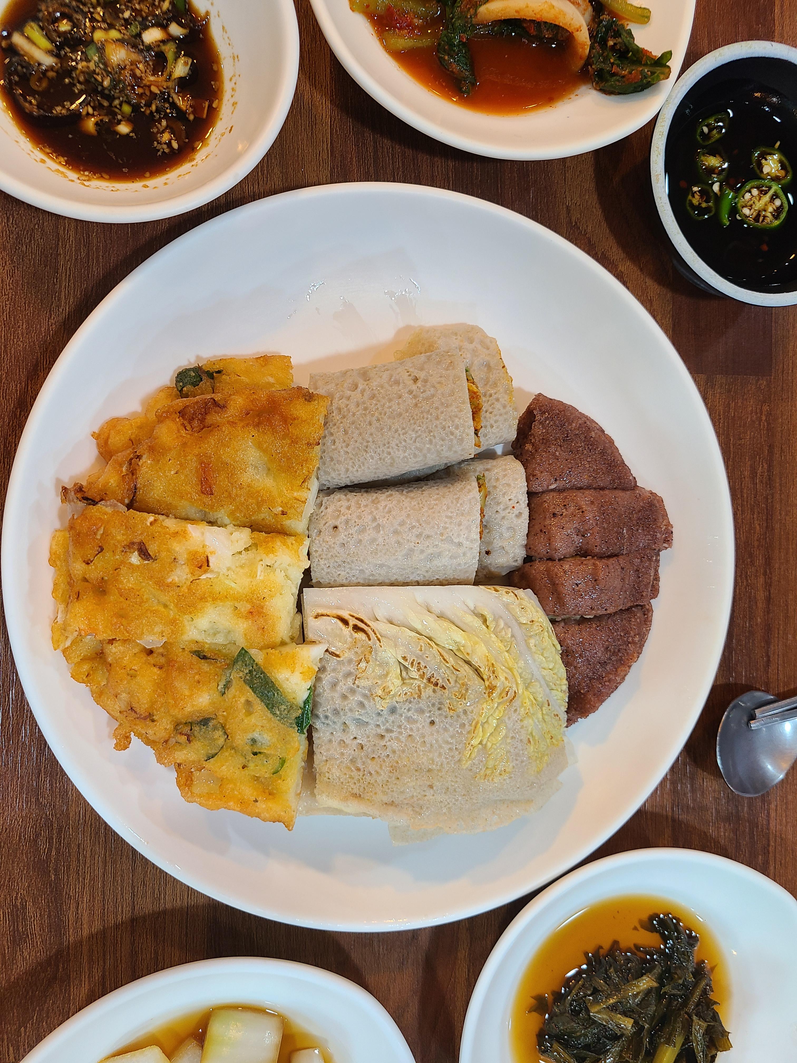 저는 의외로 기대 안 했던 녹두전이 젤 맛있었구요,