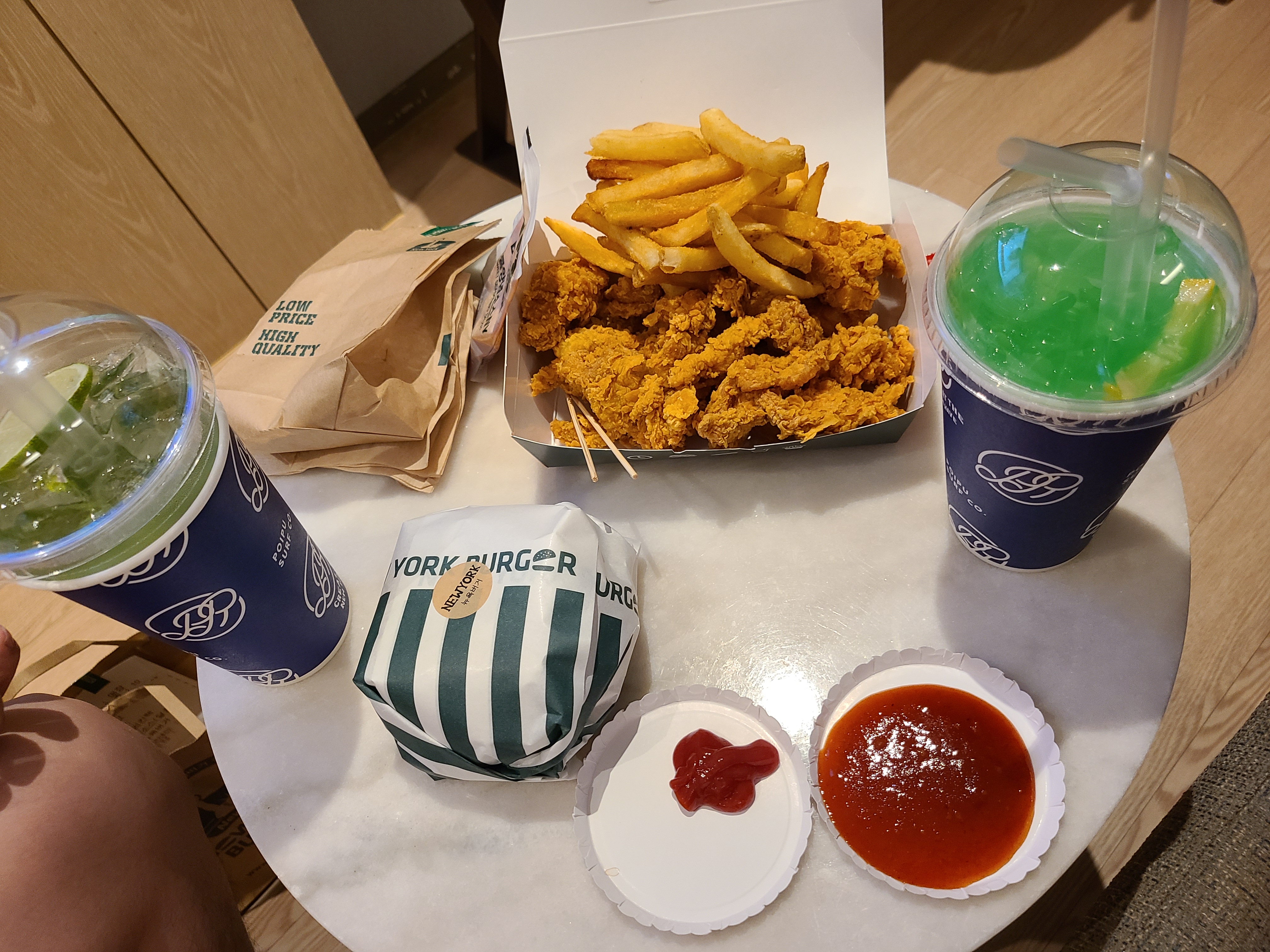 저희는 별관에 위치한 뉴욕버거에서 햄버거와 치킨을 포장해와서 먹었습니다~