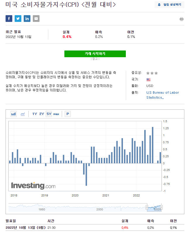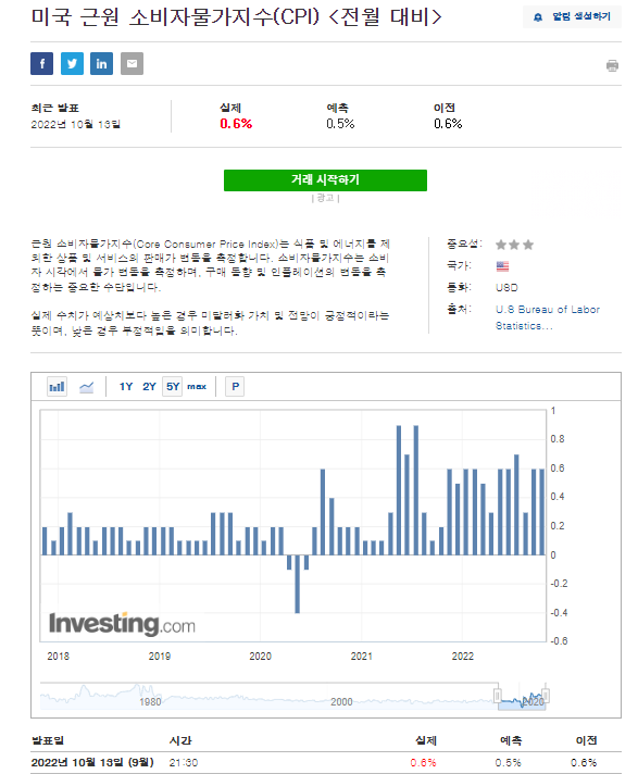 | 11월 미국 물가지표 CPI & 근원 CPI 발표 (3) | 2022.11.11 |
