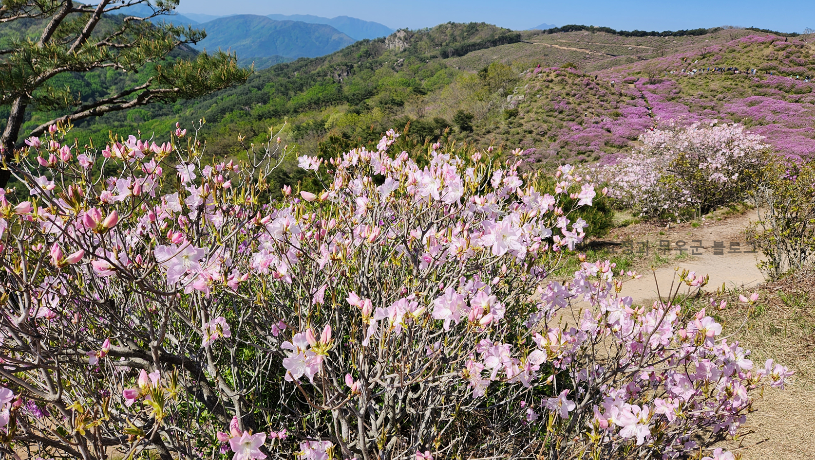 철쭉 군락지 군데군데 이렇게 단상을 설치해두어서 사진 찍기 좋은 포토존이 있으니 여러 각도로 이쁘게 찍어볼 수도 있습니다.