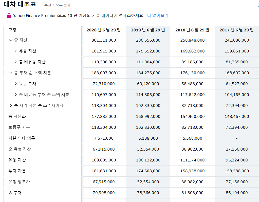 2020년 6월 29일 기준 너무나도 훌륭한 회사 재무 상태를 알 수 있습니다.