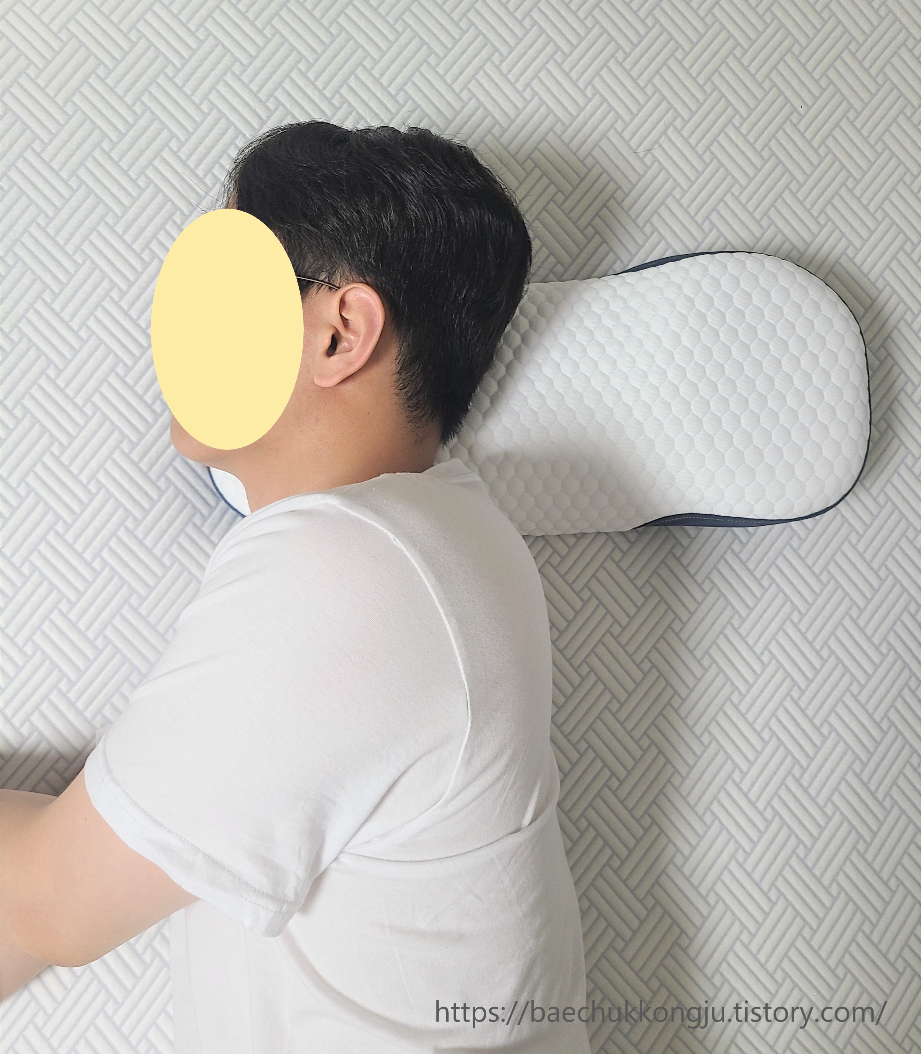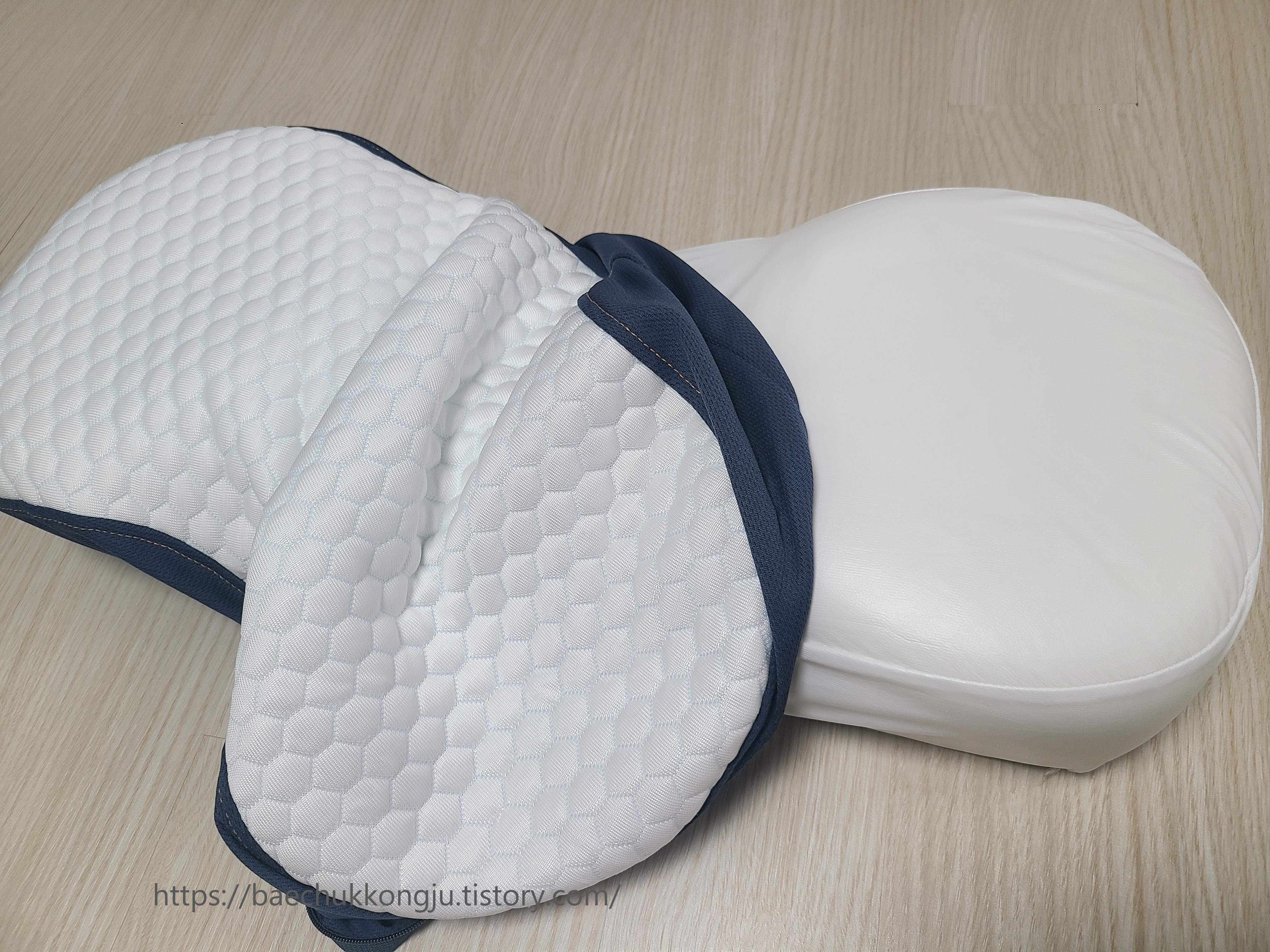 우측 닥터바르미 경추베개는 얼굴 전체를 지지해주지 못해서, 가끔 얼굴이 옆으로 떨어지곤 해서 잠에서 깼답니다 ㅠ_ㅠ