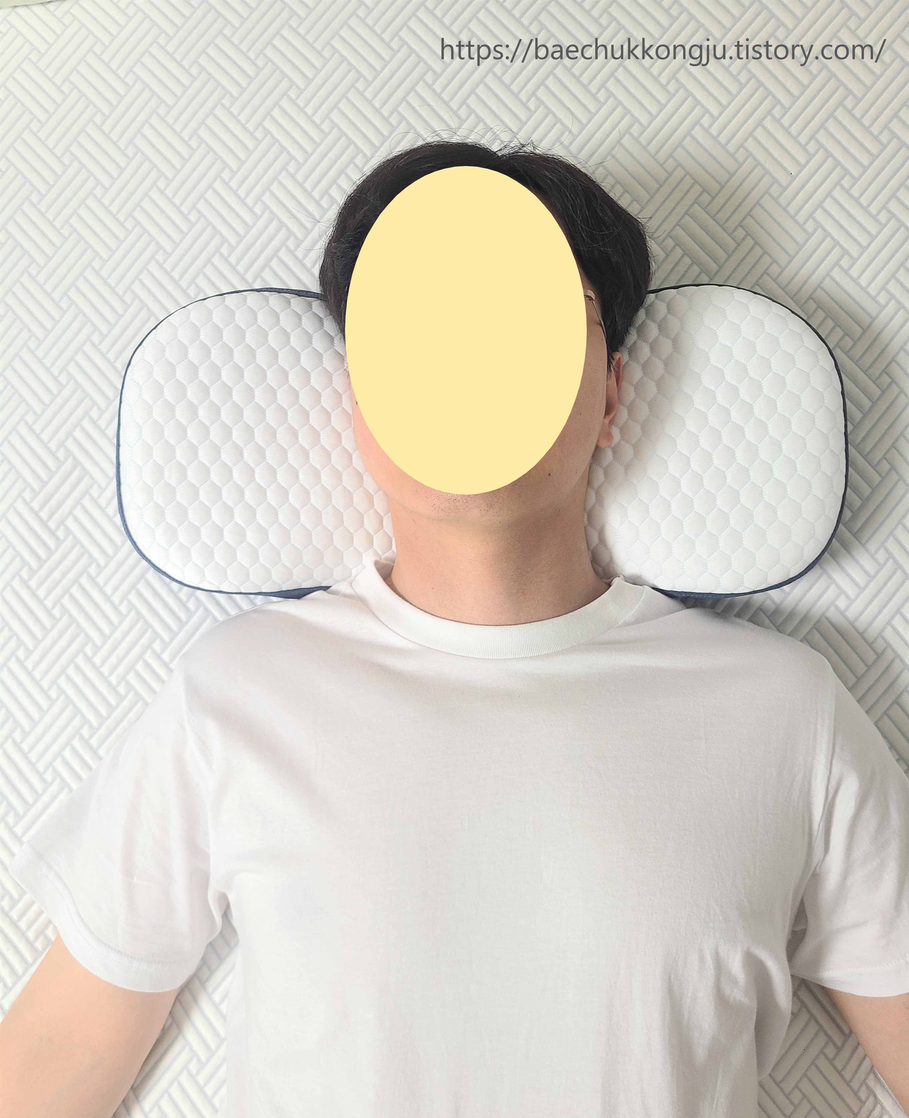 바로 누워잘때는 그냥 일반베개보다 좀더 폭신하다?? 정도의 느낌으로 경추를 잘 지지해준다는 느낌은 없어요.