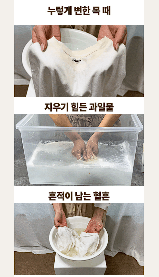누런 목때, 혈흔, 과일물 등이 잘 지워진다고 적혀있어요~~