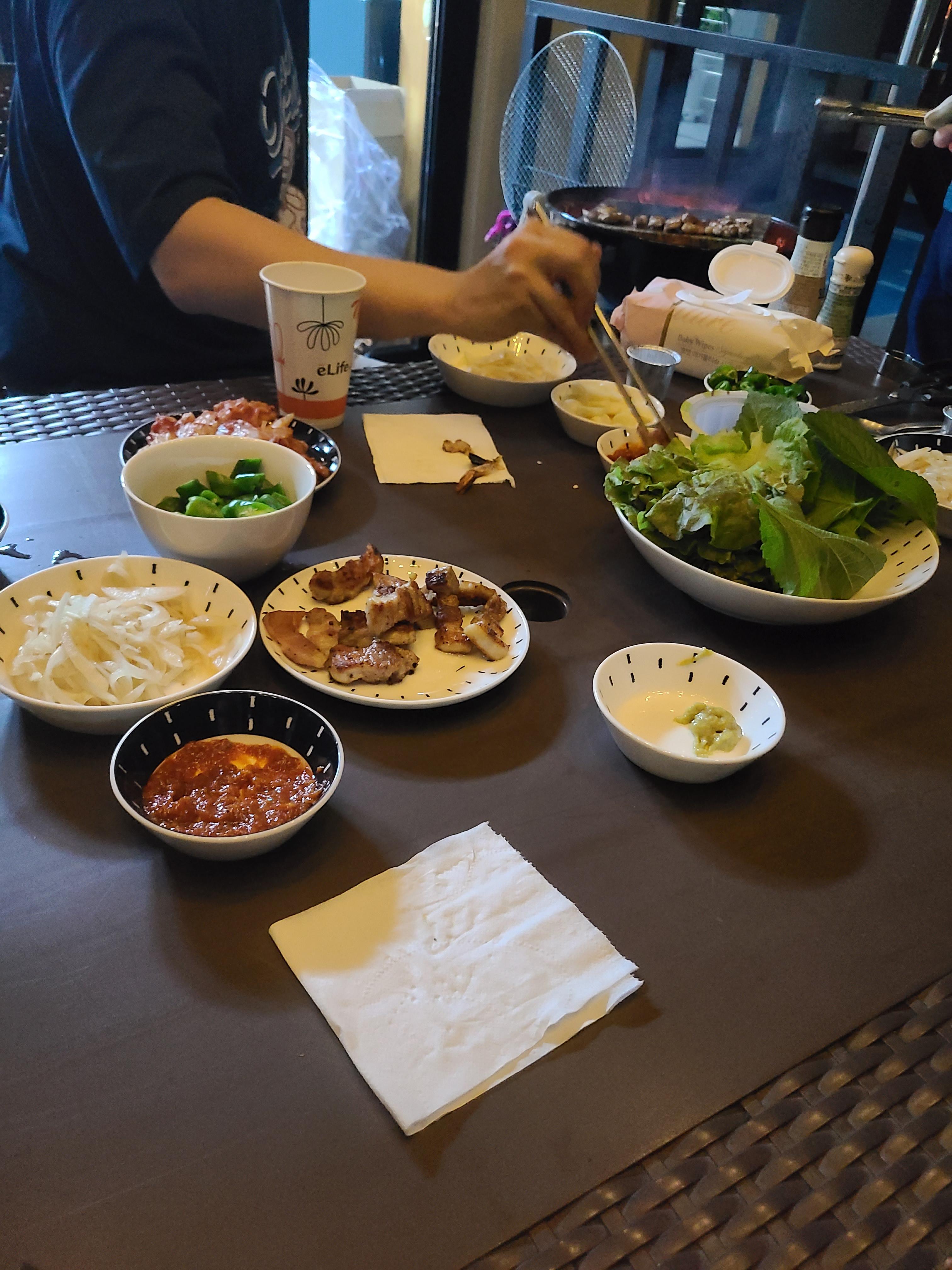 그 옆에는 바베큐 가능한 야외 테이블이 있어요!!