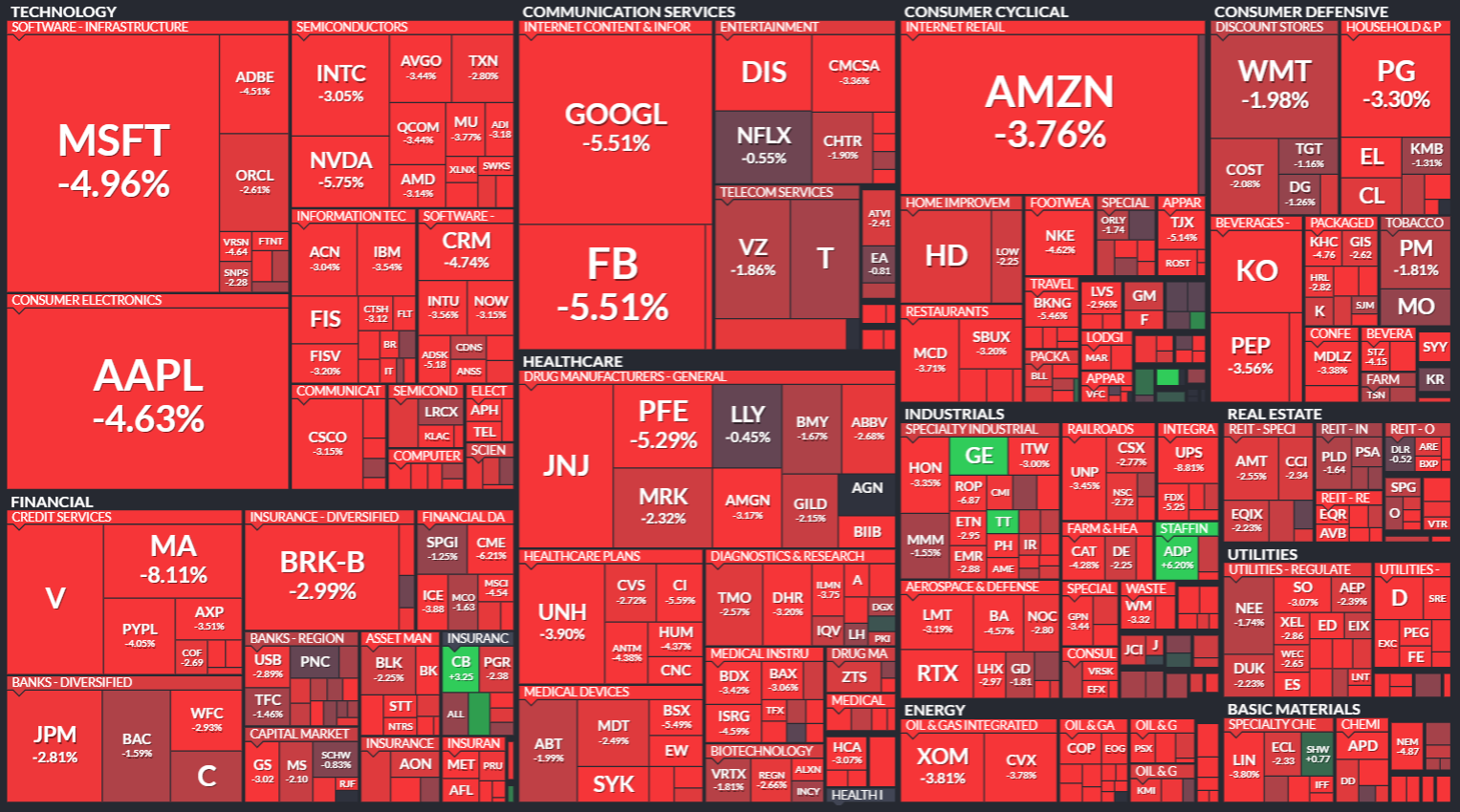 모든 업종이 거의 약 2.5%~5% 이상 하락했습니다.