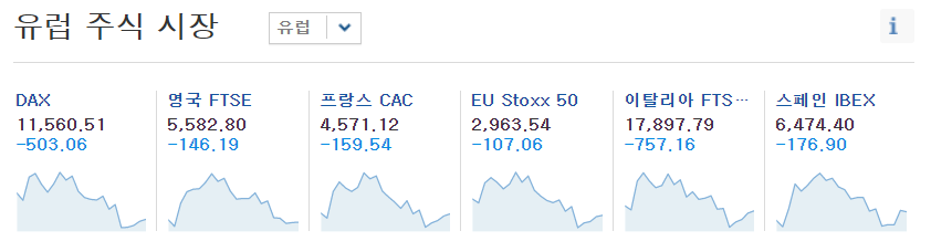 독일은 4주 동안의 부분 폐쇄를 결정하면서 유럽 증시가 폭락하며 미증시도 함께