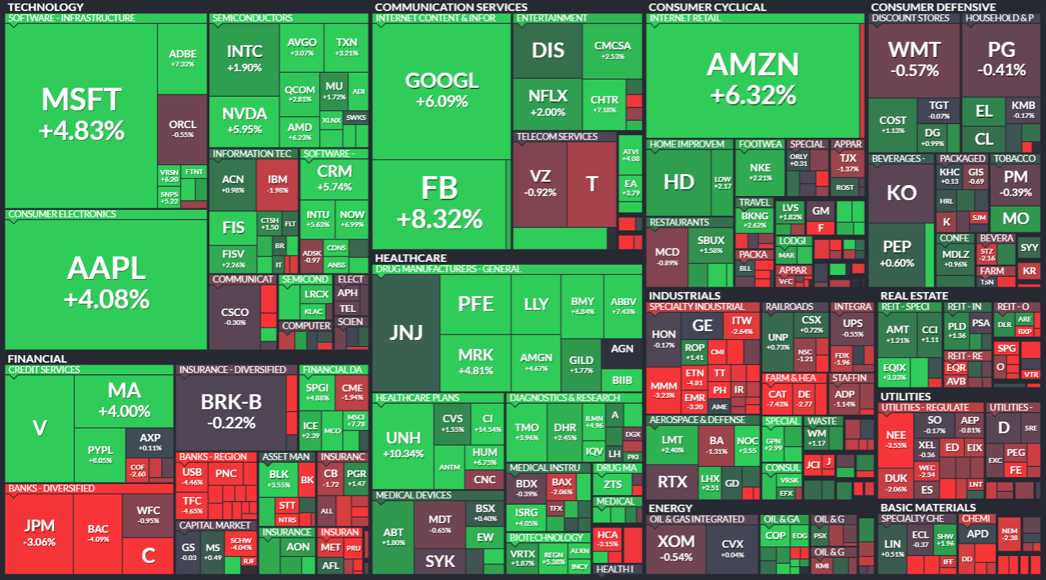 다우:1.4% & 나스닥:3.85% & S&P500: 2.2%로 상승 마감했습니다.