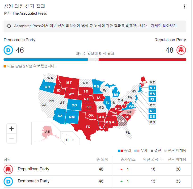 그 이유는 대선 시작 전 예상했던 상원 & 하원 블루웨이브의 길이 막혔기 때문입니다.