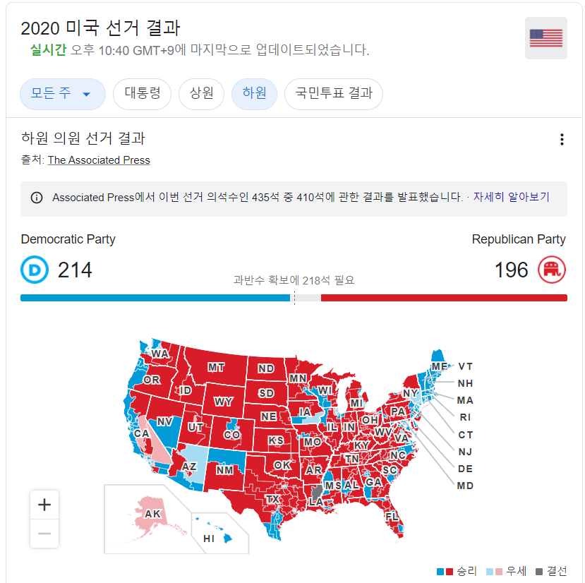 현재 대통령은 바이든 후보가 확실시되어가고 상원의원은 공화당 & 하원은 민주당으로