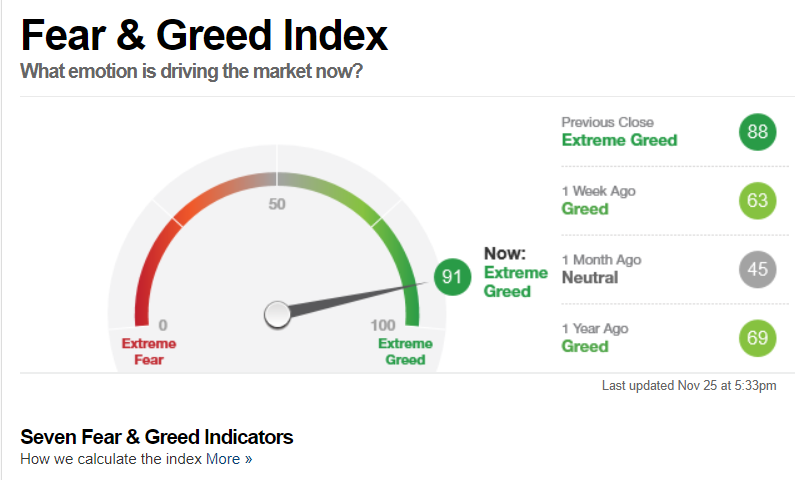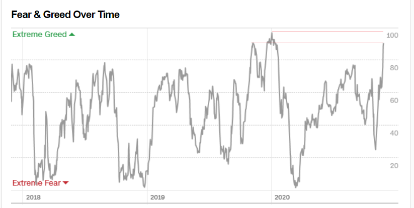 9월의 하락장이 오기 전 계속 상승할 때도 85점(Extreme greed) 정도로 기억하고 있습니다.