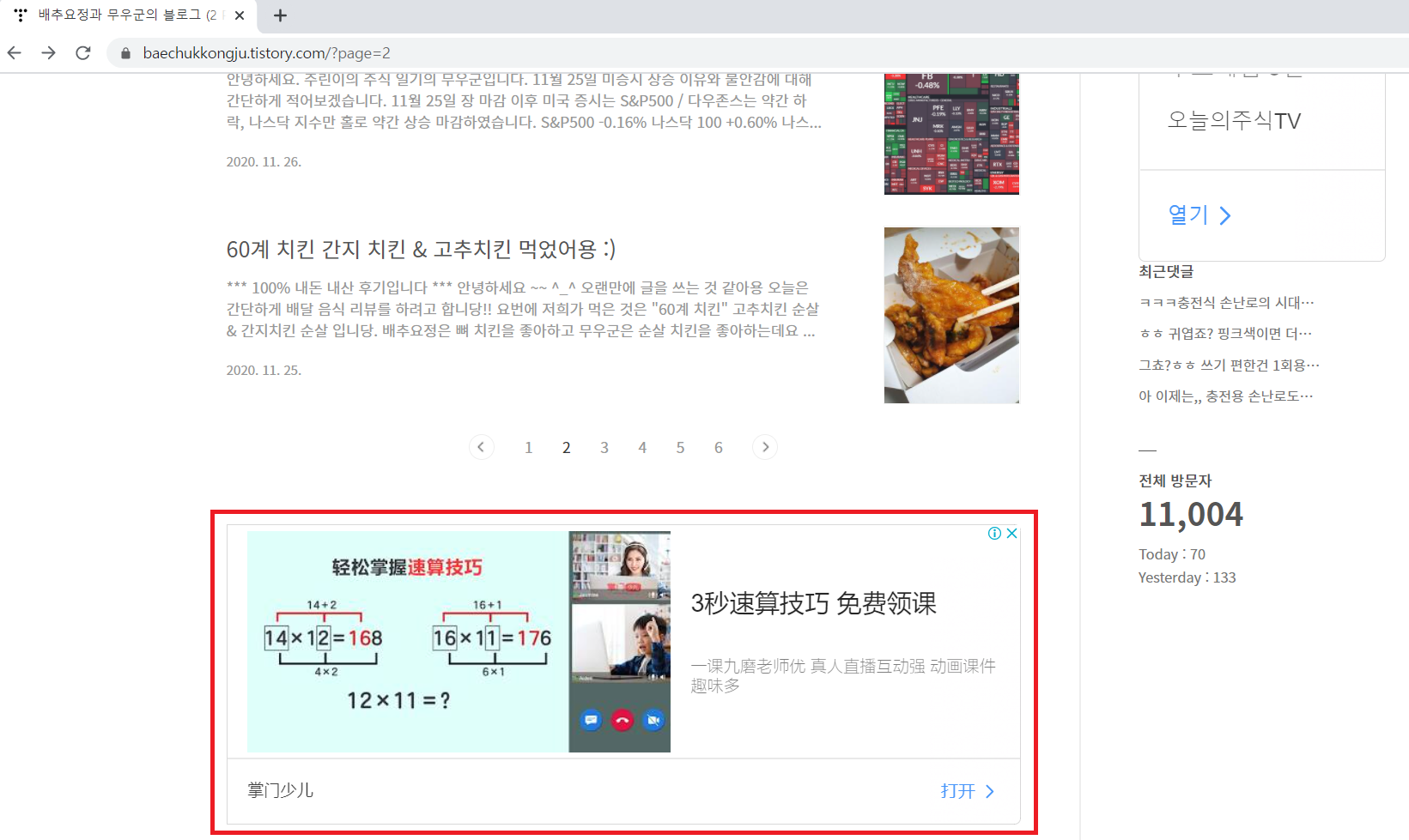 오늘도 티스토리 블로그를 살펴보던 중 애드센스 광고가 영~ 이상한 광고를 게재하고 있더군요.