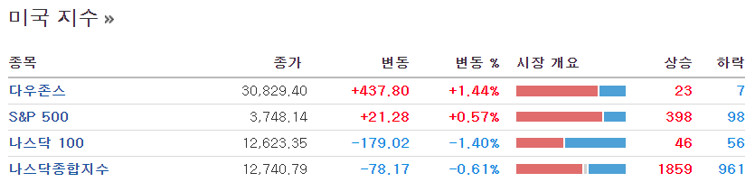 21년 01월 06일 미증시 마감은 민주당의 블루웨이브 실현으로 인하여 기술주에서 경기 민감주로 자금이