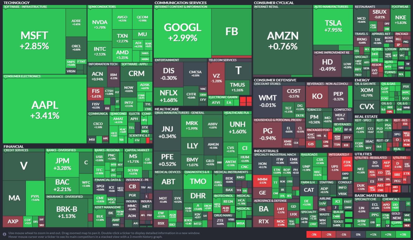 그리고 다들 걱정하던 대형 기술주 중심의 반독점 조사와 법인세 인상 등의 우려점은 현재 코로나-19의 상황이 심각하여 단기간에 과한 인상은 어렵다는 예측이고 무엇보다 대선이라는 불확실성이 이제 말끔히 해소가 되어 미증시의 상승에 탄력을 주었을 것이라고 생각합니다.