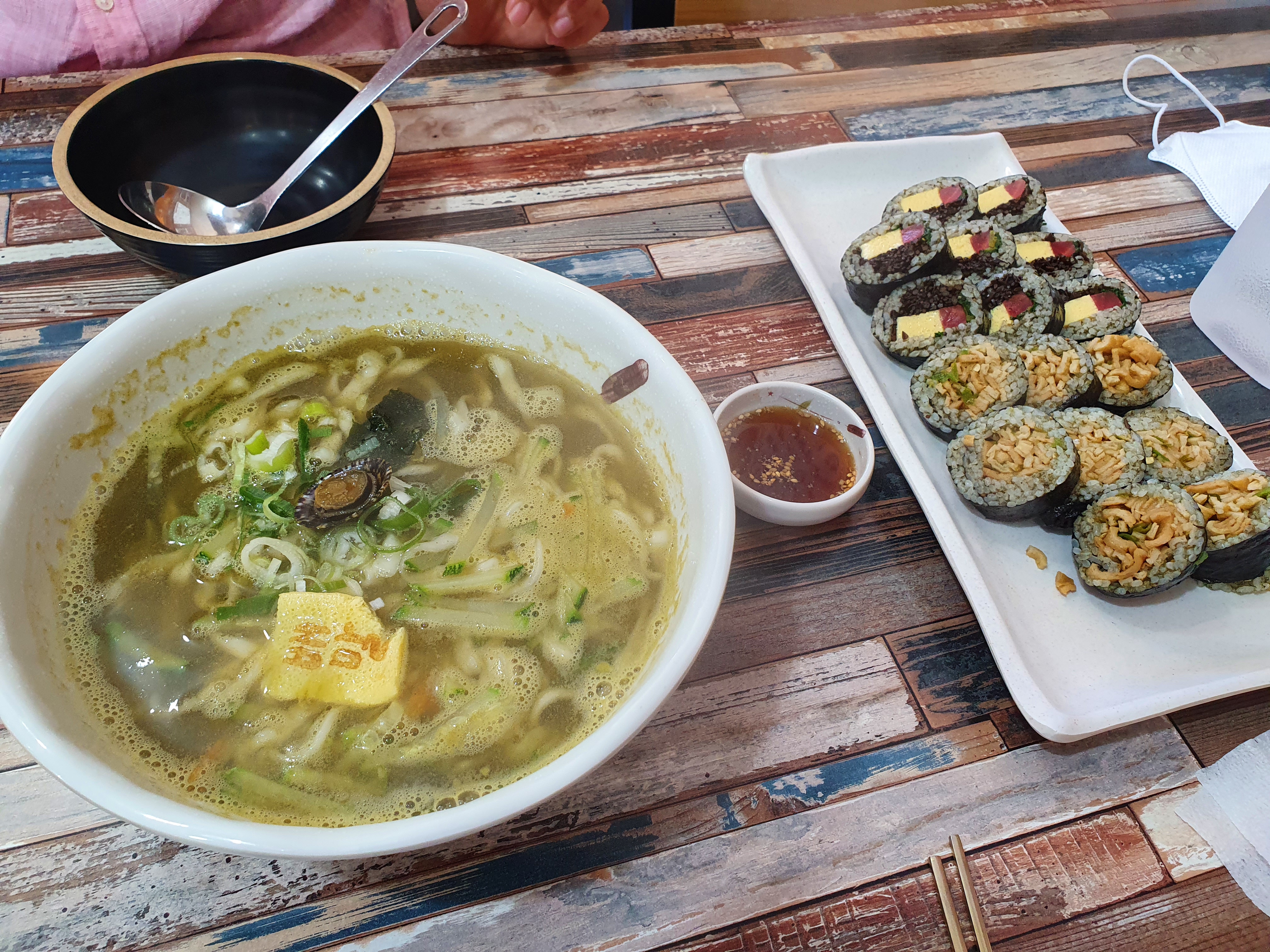 실제로 땡초어묵김밥은 맛만 보고, 톳 김밥과 칼국수만 먹었다..