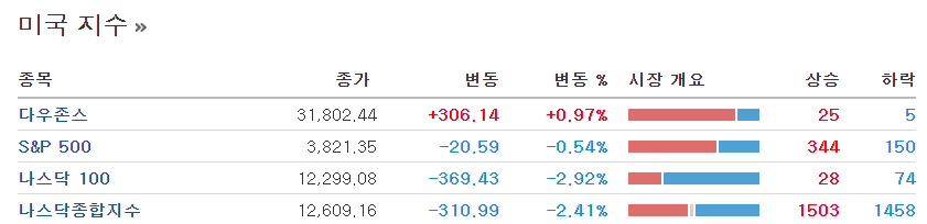 주식은 여전히 하락하고 있고 특히나 기술주 관련 나스닥이 엄청나게 하락하고 있습니다.