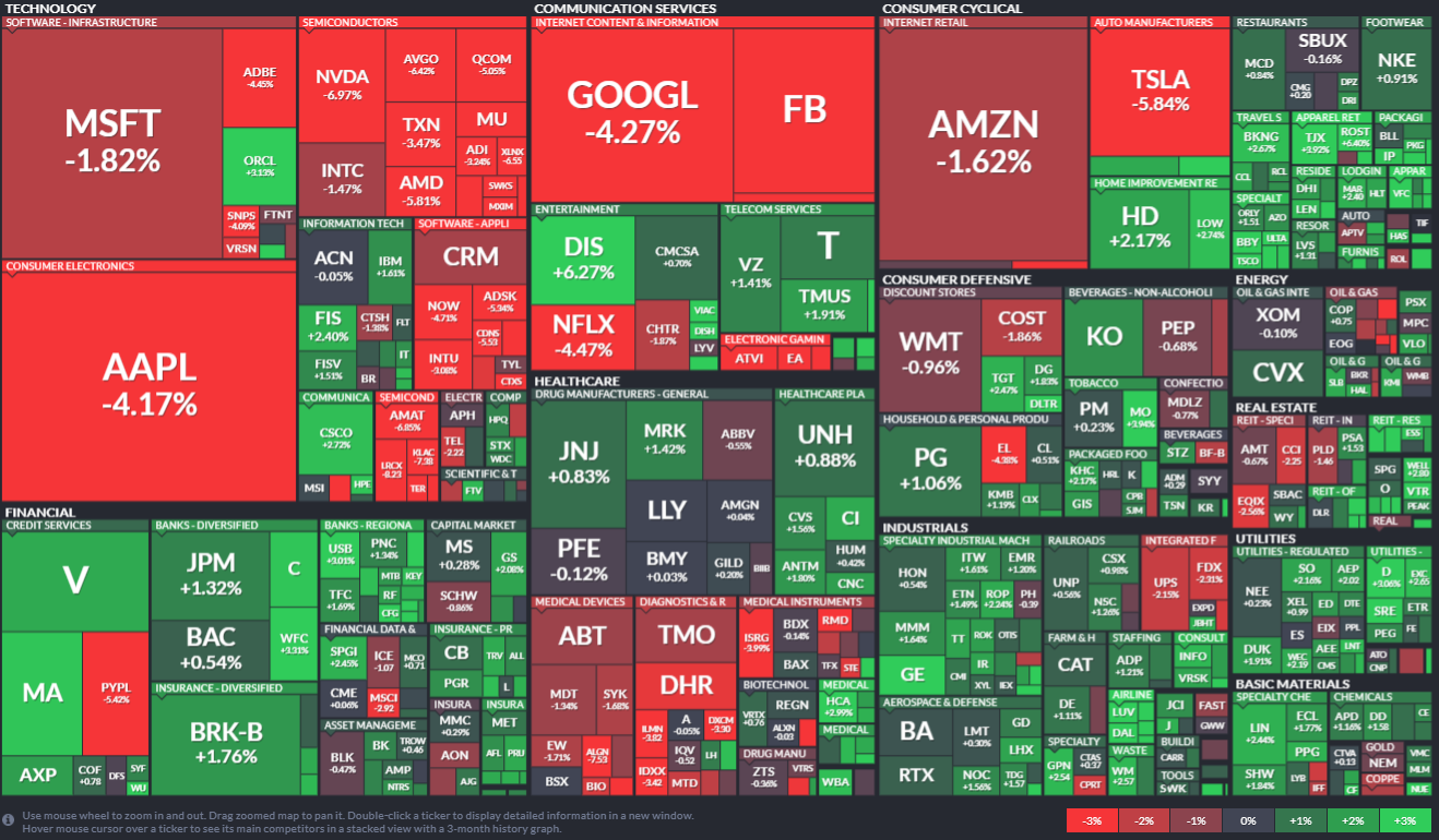 S&P 500 Map에서 알 수 있듯이 기술주 중심에서 경기민감주로 자금이 이동하는 모습을 보실 수 있으실 겁니다.