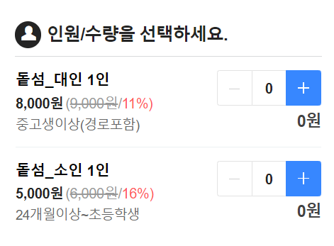 네이버에서 예약시 11% 할인이 되어 대인은 8000원 소인은 5000원으로 결제가 가능합니다.